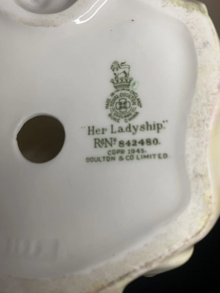 HER LADYSHIP Preowned in excellent condition Series: Harradine Classics 7.25"H Issued 1945 Retired 1959 Made in England Figurine has no cracks, crazing, chips or restorations
