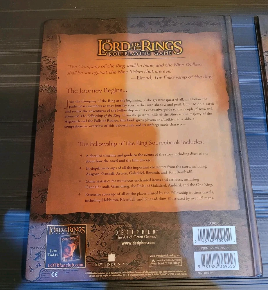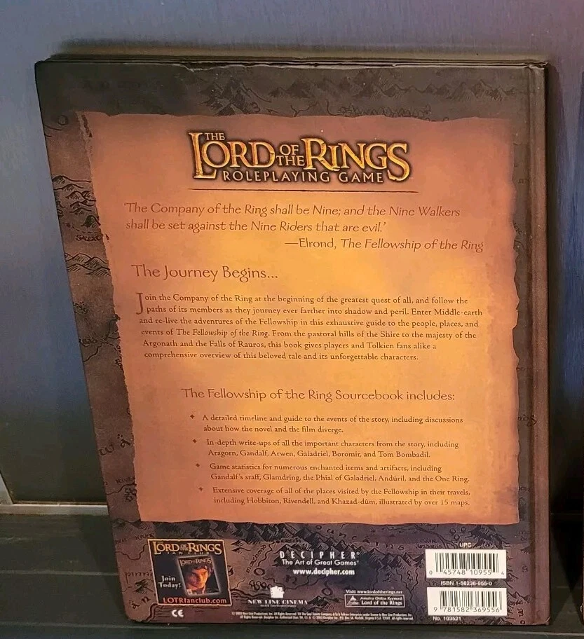 This listing is for a rare RPG Lord Of The Rings The Fellowship of The Ring Role Playing Source Book (Hardback) dated 2003 published by Decipher set out across 128 pages in VGC. From a smoke-free home. Please refer to the photos