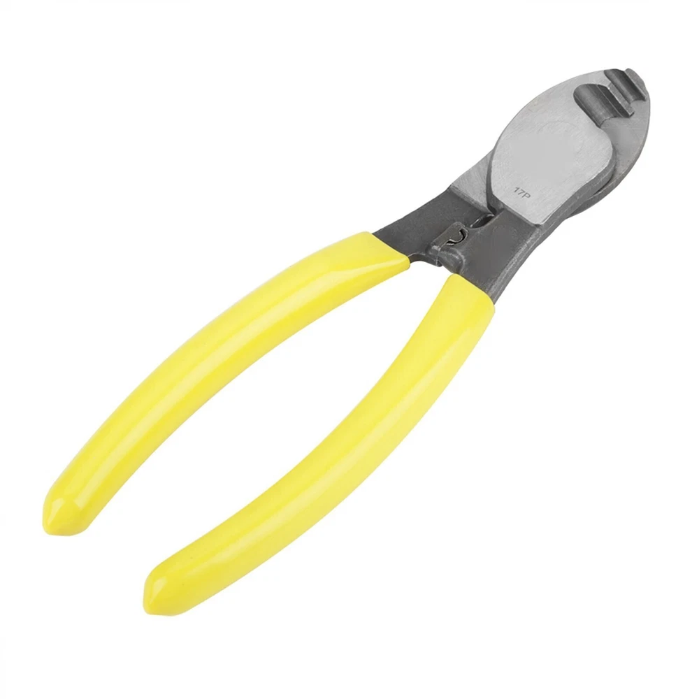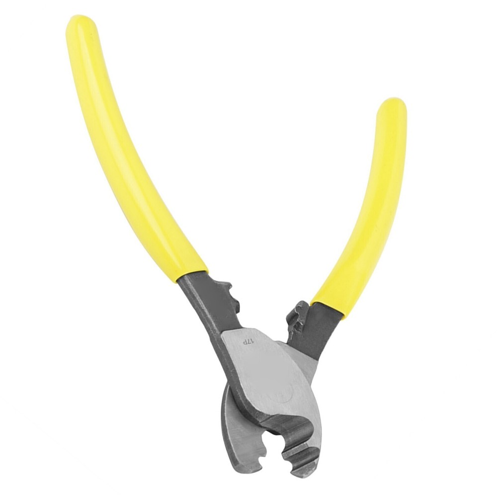 Feature: 1. Forged with chrome vanadium steel through heat treatment, the pliers body is of high hardness and long durability. 2. Adjust the fixing bolt for appropriate tightness. 3. Anti‑slip plastic handle is comfortable to grip and convenient to operate without much efforts. 4. blade edge for fast and neat cutting. 5. Wildly used for high voltage PE, IV cables, communication cables, soft copper wires, etc. Specification: Features: 1. Forged with chrome vanadium steel through heat treatment, the pliers body is of high hardness and long durability. 2. Adjust the fixing bolt for appropriate tightness. 3. Anti-slip plastic handle is comfortable to grip and convenient to operate without much efforts. 4. blade edge for fast and neat cutting. 5. Wildly used for high voltage PE, IV cables, communication cables, soft copper wires, etc. Specifications: Material: Chrome Vanadium Steel + Plastic Handle Overall Length: 150mm / 6in Weight (Approx.): 196g Package List: 1 x Cable Cutting Pliers