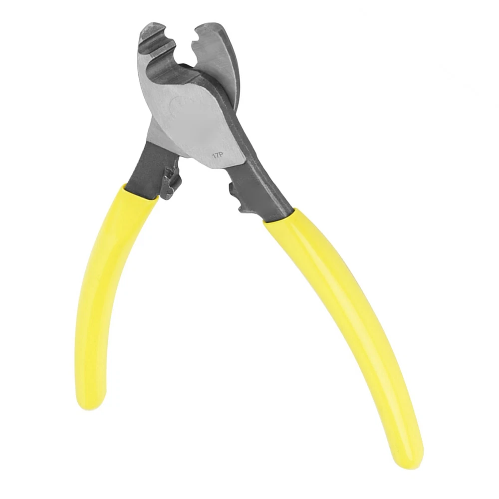 Feature: 1. Forged with chrome vanadium steel through heat treatment, the pliers body is of high hardness and long durability. 2. Adjust the fixing bolt for appropriate tightness. 3. Anti‑slip plastic handle is comfortable to grip and convenient to operate without much efforts. 4. blade edge for fast and neat cutting. 5. Wildly used for high voltage PE, IV cables, communication cables, soft copper wires, etc. Specification: Features: 1. Forged with chrome vanadium steel through heat treatment, the pliers body is of high hardness and long durability. 2. Adjust the fixing bolt for appropriate tightness. 3. Anti-slip plastic handle is comfortable to grip and convenient to operate without much efforts. 4. blade edge for fast and neat cutting. 5. Wildly used for high voltage PE, IV cables, communication cables, soft copper wires, etc. Specifications: Material: Chrome Vanadium Steel + Plastic Handle Overall Length: 150mm / 6in Weight (Approx.): 196g Package List: 1 x Cable Cutting Pliers