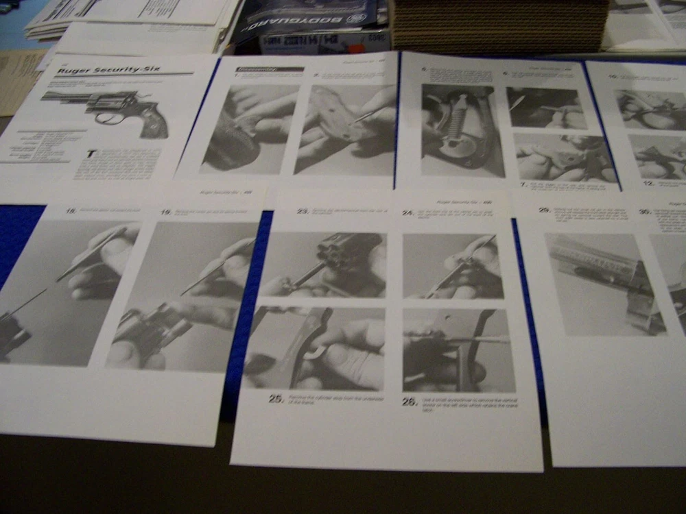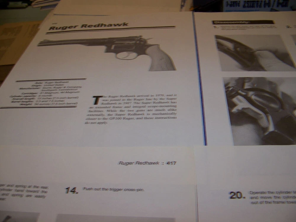 THESE ARE EXTEMELY RARE PROFILES OF ALL TYPES OF GUNS SUCH AS LISTED BELOW!.........DONT MISS YOU CHANCE TO AD THIS TO YOUR COLLECTION! THESE ORIGINAL PERIOD (1960'S/70'S/80'S/90'S ) PAPER ARTICLES WERE BOUGHT FROM A GUN COLLECTOR ESTATE SALE AND ARE SLEDOM SEEN!.......ALL IN AWESOME CONDITION FOR THEIR AGE! UP FOR SALE IS AN ORIGINAL PRINT 27-PAGE ARTICLE ON:.. RUGER REDHAWK REVOLVER (41/44 MAGNUM) (14-PAGES) & RUGER SECURITY-SIX REVOLVER (38 SPECIAL/357 MAGNUM) (13-PAGES) Page/s size: APROX: 8 1/4 " X 10 1/2" AUTHOR/ARTIST: N/A YEAR: 2011 ORIGINAL PRINT SCALE: N/A ARTICLE FEATURES: HISTORY/DETAILS/PHOTO/TAKEDOWN INSTRUCTIONS WITH PHOTOS/REASSEMBLY TIPS/DATA-SPECS CHART CONDITION: GREAT-LIGHT COLORING (NORMAL ). ** SOLD FOR 27-PAGES DRAWINGS/PROFILES ...ANY OTHER ARTICLE ON BACK OF DRAWINGS/ARTICLE ARE NOT REPRESENTED IN THIS AUCTION! *** (REMEMEBER THESE ARTICLES ARE EXTRMELY OLD AND RARE...SOME MAY HAVE SOME BORDER DISCOLORATION/SMALL EDGE CHIPS/PAGE DISCOLORATION)/BINDING CUTOUTS....SEE CONDITION AND NOTES LISTED ABOVE AS TO EACH ARTICLE! **THESE ARE AIRCRAFT ARTICLES THAT HAVE BEEN EXTRACTED FROM VINTAGE MAGAZINES/ECT... AND ARE INDIVIDUAL PAGES OF EACH SUBJECT AND SOLD AS COMPLETE ARTICLES ON EACH SAID AIRCRAFT AS LISTED ABOVE! NOT SOLD AS A COMPLETE MAGAZINE or BOOKLET!!! **all articles are shipped flat on cardboard flat and mail flat in manila envelope to INSURE condition! ** I DO OFFER COMBINED SHIPPING ON MULTIPLE ITEMS PURCHASED