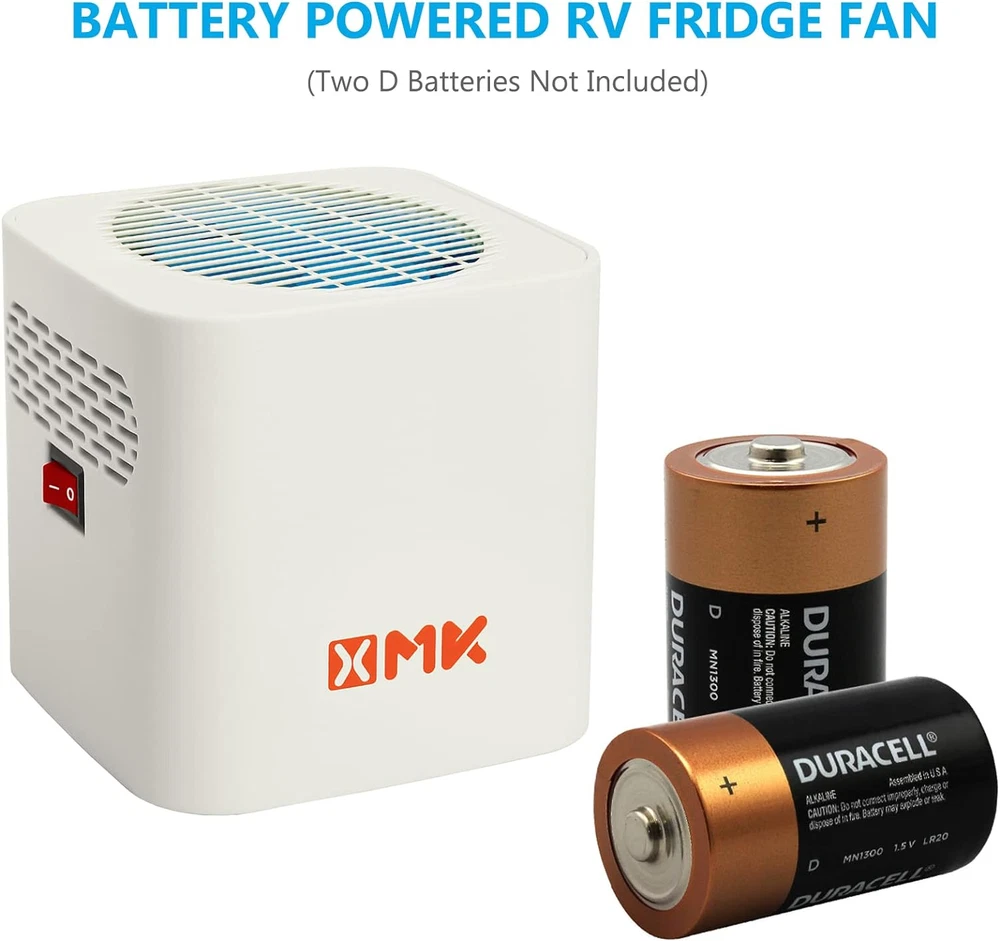 High Power RV Refrigerator Fan: XMK fan motor speed rating of 3000 RPM which circulate the cold air around in fridge efficiently and quietly. The compact design doesn't take up much space, great fit RV, camper, trailer, boat refrigerator. Maximum Airflow To Keep Fridge Cool: Multiple air vents increase airflow in all directions to keeping the fridge cool and keeping your food fresh for longer, as well as take some of the stress off the fridge. Balance Out Internal Fridge Temperature: The RV fridge fan keep the cold air uniformly spread, balance the temperature between the upper shelves and the lower shelves. Easy To Turn On And Off: There is a on/off switch on the fan, easy to turn on when it in use and turn off to saves battery life when not in use. Sturdy Refrigerator Fans For RVs: Well constructed with firm materials for durability and rated for fridge use to withstand cold and wet element. Product Description XMK RV Fridge Fan - A Must Have For RV Camper Refrigerator XMK portable RV Fridge Fan equipped with high power 3000 R/M motor and multiple vents helps circulates the air more efficiently and keep food fresh, a good solution to bad air circulation.