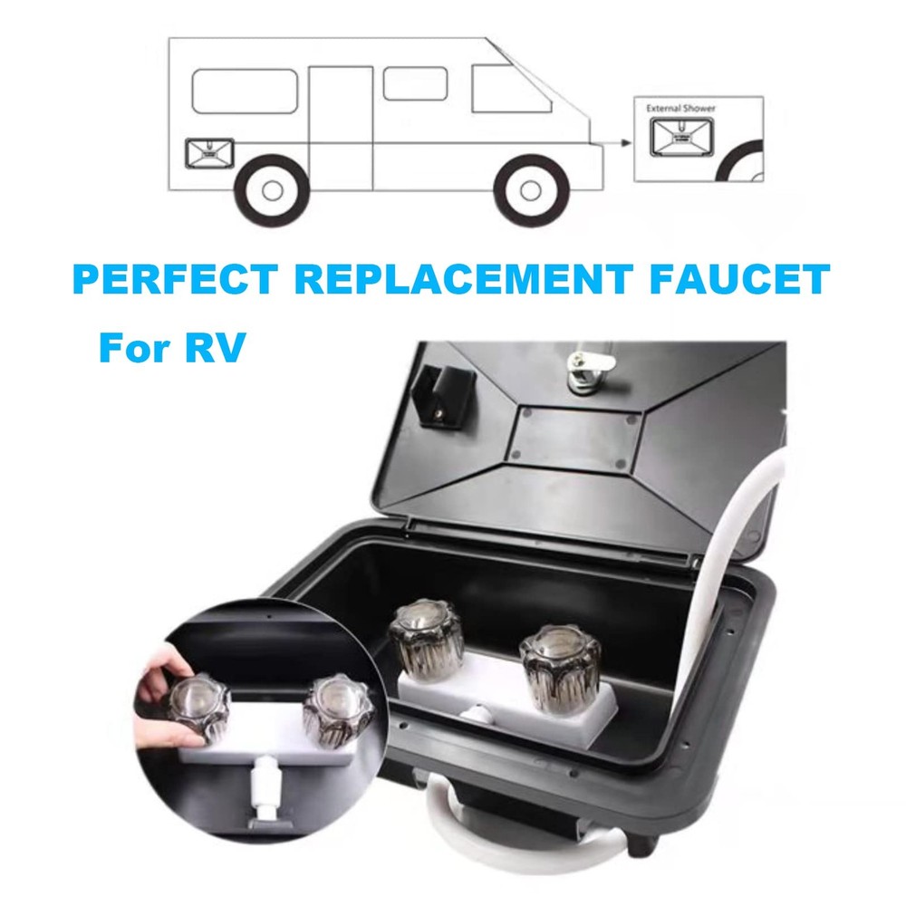RV Shower Faucet, 4" RV Shower Faucet Valve Diverter,Camper Shower Faucet for RV/Motorhome/Trailer, Dual Smoked Acrylic Knobs Shower Faucet (White) [Choose Us] When you want to update your shower hardware, please choose our 4" RV Shower Faucet Valve Diverter for RV, camper, motorhome, travel trailers. Inside shower faucet or outside shower faucet. Features: 1.RV Shower Faucet is perfect suit for RV, camper, motorhome, travel trailers. 2.RV shower faucet with dual knobs to quickly adjust temperature and aerated water pressure. 3.Good size and classical design also fit the tighter spaces in outside and inside of RV shower. 4.Easy install faucet for rv on the inside shower or outside shower without a plumber. 5.Dual knob faucet comes with a durable easy-to-turn design, and provides a desired smooth turning action and unwanted dripping. Specifications : Works on any 2-hole, 4” center to center installation. The valves are 4 inches apart for stander rv bathroom.The diverter accommodates all standard shower hoses. : If you have any question about the shower faucet for rv, please e-to us. Every shower faucet for rv be backed 24 mouths ,by it confidence. Package Include: 1x RV shower faucet 2 x Installation nuts and washers 【Perfect rv shower faucet :】This shower faucet is an easy install when you want change your old RV shower faucet.Easy install shower faucet for rv without plumber.This faucet is UPC and CUPC Certified. 【Indoor or Outdoor Use:】This 4" RV shower valve diverter suit for rv/ camper/ motorhome/ trailer/boat. It is a shower valve diverter for Indoor bathroom shower faucet.Indoor or outdoor shower faucet. 【Good Size:】This rv camper shower faucet works on any 2-hole, 4”center to center installation. this diverter accommodates all standard shower hoses.It was made with a recreational vehicle’s space in mind,there is enough space in your shower toaccommodate this faucet. 【Safe to Use:】 This RV shower faucet with dual smoked acrylic knobs operation. The dual knobs faucet are easy to turn and work smoothly which provide precise temperature control and aerated water pressure.Be safe to use it. 【Package Include: 】You will get a RV shower faucet valve diverter, every diverter is backed by 24-months . Buy it now to update your shower hardware.If you have any question, we will stand by.