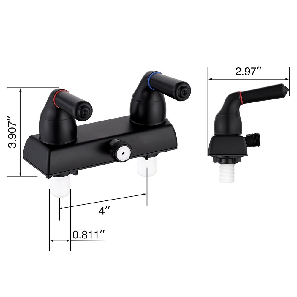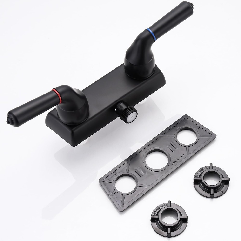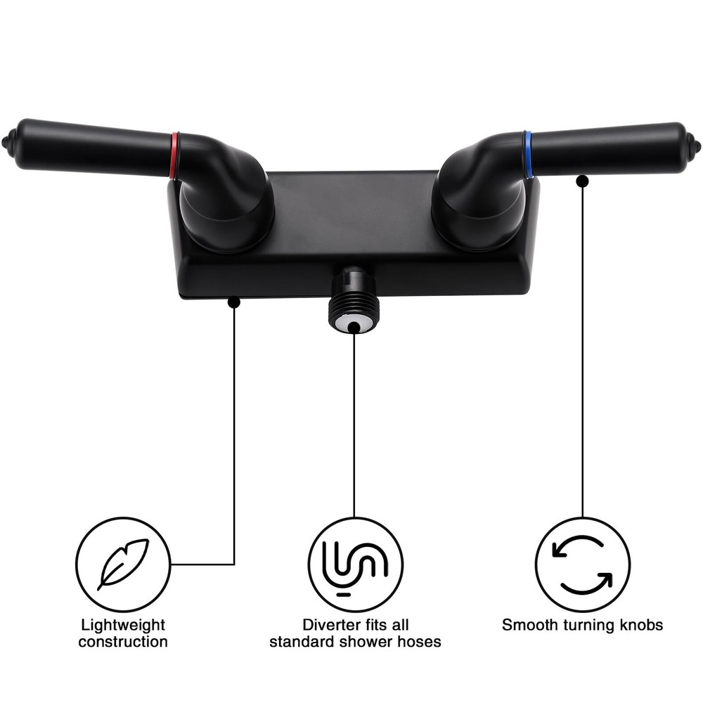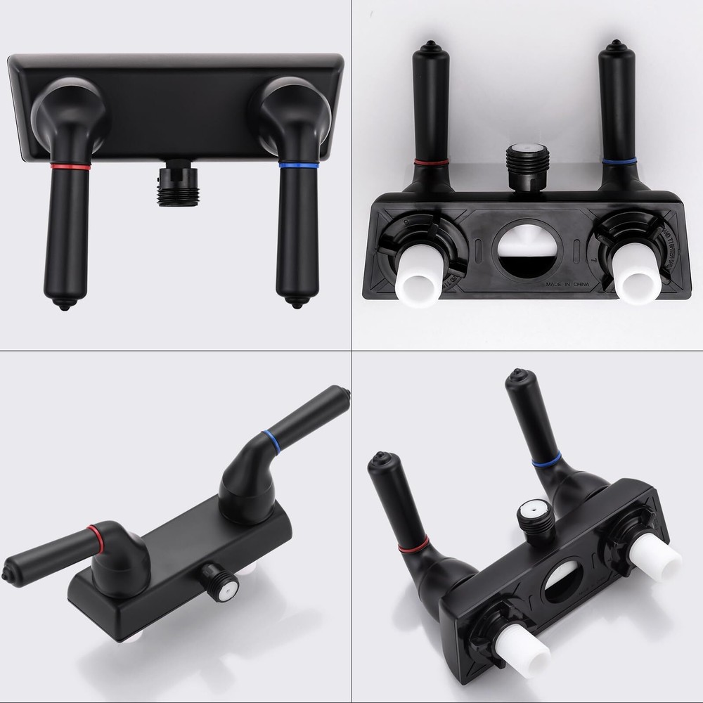 RV Shower Faucet - 4" Dual Lever Shower Valve Diverter with Hot/Cold Control, Leak-Proof and Rust-Proof ABS Construction for RV/Camper/Motorhome Bathroom (Indoor/Outdoor Use) Black Features: This faucet boasts an elegant exterior, a fully functional diverter, and sleek lever handle operation to quickly adjust temperature and aerated water pressure. Design: The classic styling of this faucet is the perfect solution for updating your tub hardware. This unit is made with premium-grade lightweight synthetic waterways and sturdy plastic construction. Quality: This dual lever faucet comes with a durable easy turn design, and provides a desired smooth turning action and unwanted dripping. The diverter accommodates all standard shower hoses. Installation: If you are concerned about enough space in your shower to accommodate this faucet, don’t worry! It was made with a recreational vehicle’s space in mind, and no plumber is needed. Specifications: Works on any 2-hole 4” opening. Total length is 3.9”. The flow rate is a powerful 2.4 GPM for those who are looking for a powerful stream. Introducing the RV Outdoor Shower Faucet Control Valve, your perfect companion for all your outdoor shower needs! Designed specifically for campers and RVs, this faucet control valve allows you to easily control the temperature of your shower water, ensuring a comfortable and refreshing experience.With its durable construction and reliable performance, this RV shower kit is built to withstand the rigors of outdoor use. The crossroads RV shower valve replacement is made of high-quality materials, ensuring long-lasting durability and functionality.Featuring a convenient shower hose and head, this RV faucet with shower diverter provides a complete showering solution. The versatile design allows you to easily switch between the faucet and shower functions, providing flexibility and convenience.Whether you're relaxing on your deck or enjoying the great outdoors, this camper shower faucet is the perfect addition to your RV. Its compact and portable design allows for easy installation and storage, making it a must-have for any outdoor enthusiast.Upgrade your RV shower experience with the RV shower faucet with hose and head. Its easy-to-use knobs and precise temperature control ensure a comfortable and enjoyable shower every time. Don't settle for subpar showering options – choose the best with the Dura Faucet RV shower.Replace your old and worn-out shower valve with confidence using the Dura Faucet RV shower valve replacement. It's a perfect fit for your RV's exterior shower, providing a seamless and reliable replacement solution.Don't compromise on quality and functionality – choose the RV shower faucet that delivers exceptional performance. With its sturdy construction and versatile features, this RV shower faucet is sure to enhance your camping experience.Upgrade your RV's shower system today with the RV shower faucet control valve – the ultimate choice for outdoor showering. Shipping We offer FREE shipping on all orders! We ship within Three business days of payment, usually sooner. We use a selection of shipping services such as UPS, FedEx, USPS etc. We only ship to the lower 48 states, no APO/FPO addresses or PO Boxes allowed. Local pickups and combined shipping options are not provided at this time. Return You can return a product for up to 30 days from the date you purchased it. Any product you return must be in the same condition you received it and in the original packaging. Please keep the receipt. Payment We accept payment by any of the following methods: PayPal Please pay as soon as possible after winning an auction, as that will allow us to post your item to you sooner! Feedback Customer satisfaction is very important to us. If you have any problem with your order, please contact us and we will do our best to make you satisfied. Contact Us If you have any queries, please contact us via ebay. We usually respond within 24 hours on weekdays. Please visit our eBay store to check out other items for sale! Thank you for shopping at our store.