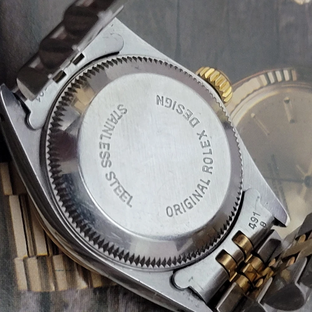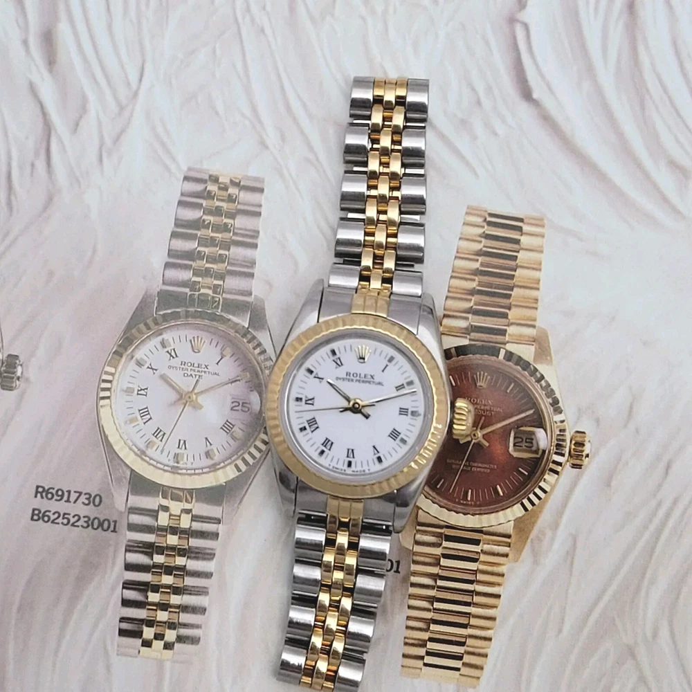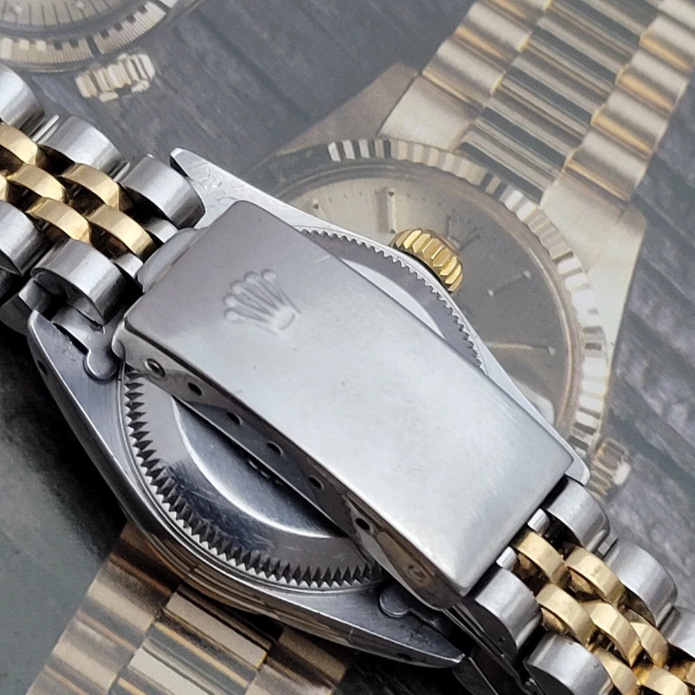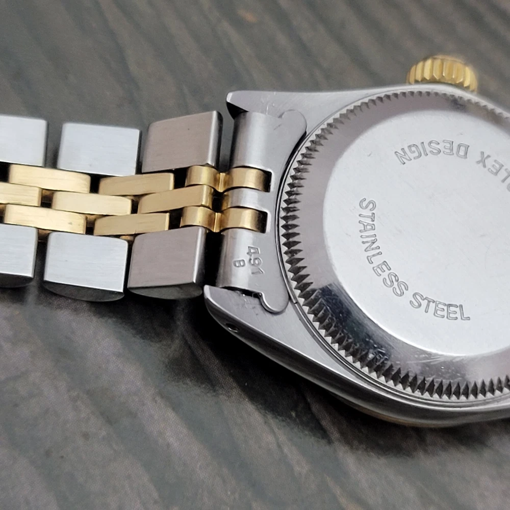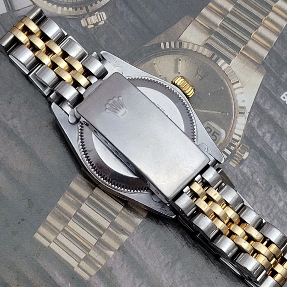 Presented here in true auction format starting at only one penny is this magnificent ladies automatic 18 karat gold and stainless steel 100% original Rolex oyster perpetual. This beauty has just been fully serviced and comes with a 3-month service warranty for your added satisfaction and convenience! This Rolex Oyster Perpetual model 67193, a timeless Swiss masterpiece that seamlessly blends luxury and functionality. Her quality is unsurpassed, crafted with a harmonious combination of18k yellow gold and stainless steel, embodying both elegance and durability. You're going to love the 100% original brilliant white dial set with the midnight black Roman numerals that accurately indicate the passing time, beneath the sapphire crystal, to the gorgeous solid 18k gold hands. Each of the hour markers are raised above the dialed surface and solid 18 karat gold. Key Features: Case and Bracelet: The 24mm stainless steel oyster case is complemented by an 18k yellow gold fluted bezel and a matching two-tone solid 18k & steel bracelet. The original Rolex logo 18 karat gold screw down crown completes the instantly recognizable Rolex two-tone look ensuring a sophistication and style that stands out in any setting. Movement: Swiss quality reliability is the key feature of the fully automatic Rolexs renowned automatic self-winding oyster perpetual movement. This watch guarantees precision and reliability, certified as a chronometer and has just been fully serviced by a master watchmaker, coming with a 3-month service warranty. Dial: The white dial, adorned with elegant Roman numeral hour markers and gold hands, offers a classic yet striking appearance suitable for every event in your life from a day in the office, a night on the town or a weekend at the beach.The scratch-resistant sapphire crystal ensures the dial remains pristine over time. Crown: The 18k yellow gold crown, featuring the iconic Rolex logo, adds a touch of luxury and ensures easy time-setting. To set the time, rotate the crown counterclockwise unscrewing it from the body of the watch. This will put you in the winding position should you need to wind her. To set the time, pull the crown outwards to the time setting position. This Rolex Oyster Perpetual is not just a watch; its a statement of elegance and sophistication. Whether youre attending a formal event or enjoying a casual day out, this timepiece will elevate your style and leave a lasting impression. Indulge in the luxury of Rolex and experience the perfect blend of tradition and innovation with the Oyster Perpetual. Somebody is going to be very pleased when they place the winning bid. Check out all the pictures of this watch that truly do not do her Justice! Good luck to you all! ___________________________________ Take a few minutes and read some of the tens of thousands of positive feedback that we have received from our users here at Decowatches and our sister site Decowatchesparts and you will understand why buying a watch from us is an enjoyable and safe experience! Our shipping fee ensures that this watch is carefully packaged, fully insured, has door to door tracking and comes with a three-month service warranty for your added piece of mind satisfaction and convenience! We are pleased to say that we are now shipping twice a week, either Wednesday or Thursday and Saturdays. Thank you for viewing this gorgeous ladies Rolex and good luck to you all! Emerson