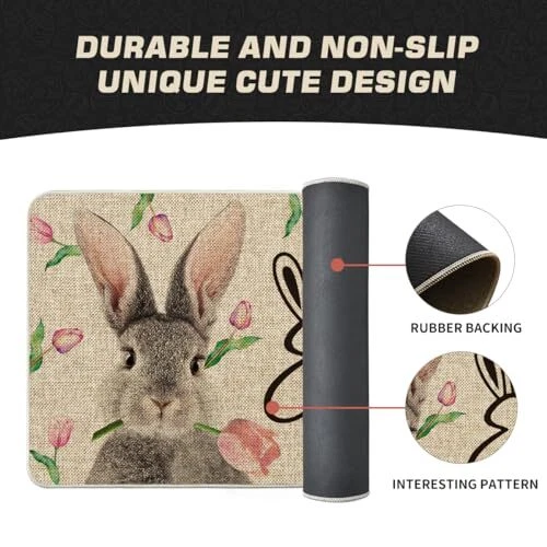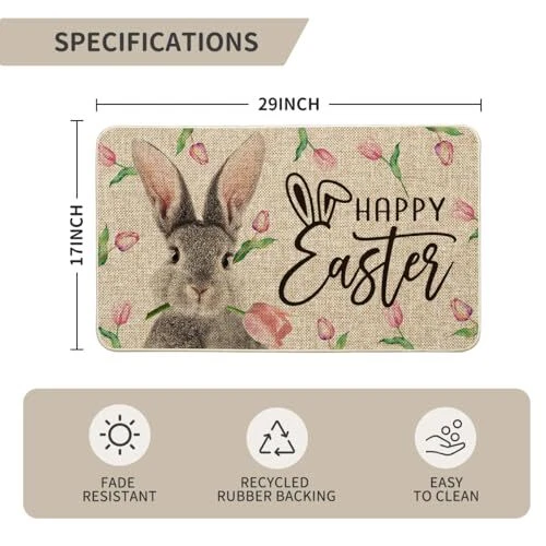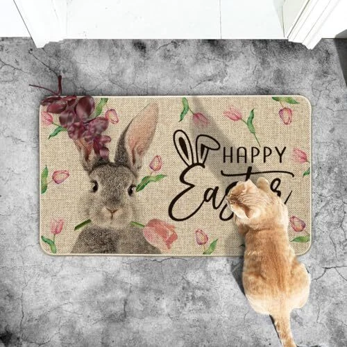 Return Policy Fast Delivery Trusted seller Rabbit Flower Happy Easter Doormat, Seasonal Spring Home Decor Low-Profile Switch Rug Door Mat Floor Mat for Indoor Outdoor 17x29 Inch Product Description PERFECT FOR HOME DECOR : Welcome guests to your home with this unique, seasonal doormat. Perfect for any deck, patio, porch, veranda, and entryway and extend a warm welcome to all who enter your home DURABLE AND NON-SLIP : Backed with non-slip recycled rubber and topped with polyester felt that is low-profile to reduce chances of tripping, high-quality durable construction that is stain resistant LOW-PROFILE DESIGN : Measures 17" x 29" and features 0.25" slim, making it just the right size for every entryway. Our stylish doormats make a beautiful addition to your entryways, craft rooms, and office spaces EASY TO CLEAN : No scrubbing needed. Doormats are quick and easy to clean, just spray off with a hose or use a sponge and mild detergent to clean off dirt or yard debris. Material: 5% Polyester 95% Rubber. Imported, Country of origin: China UNIQUE CUTE DESIGN : Doormat tops were printed with unique and stylish patterns. A beautiful and creative way to decor your home when keeping clean Shipping Returns Payment Shipping Shipping is FREE to all addresses other than APO/PO boxes in the lower 48 states. All our stock ships from US-based warehouses. Shipped via USPS or UPS (depending on location and package weight) Unless stated otherwise, all orders will ship within 24-72 hours of your payment being processed. Check our feedback to see the great reviews of FAST shipping we offer. Returns Seller does not accept returns Payment We currently accept payment via eBay managed payments only. Once payment is cleared, we will dispatch your shipment within 1-3 business days. Please refer to the "Shipping" tab for more information regarding shipping speed to your destination.