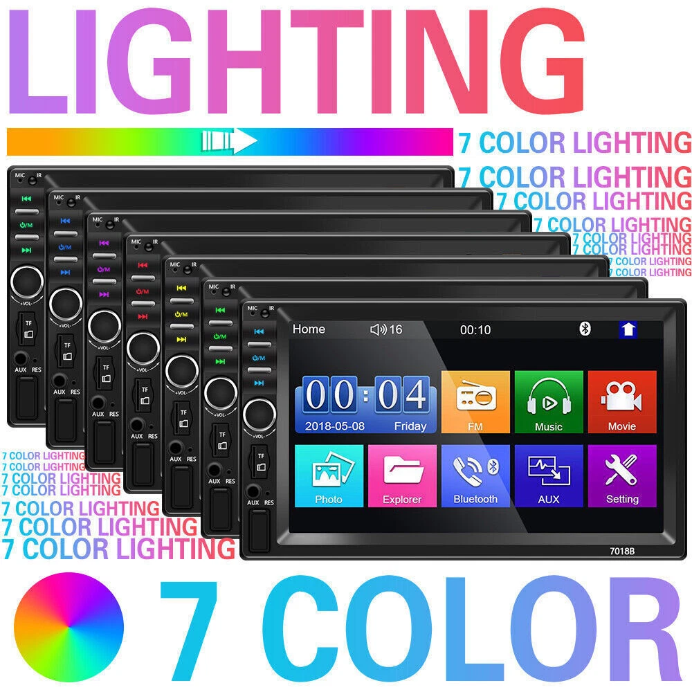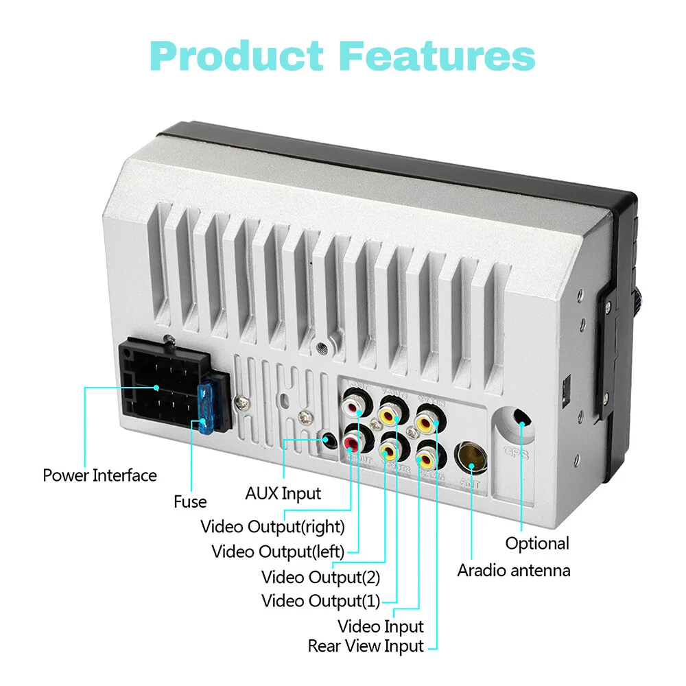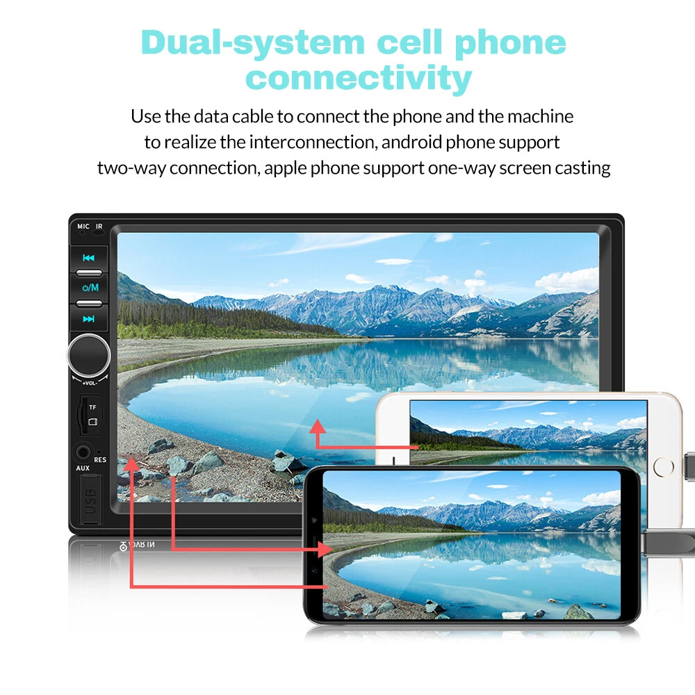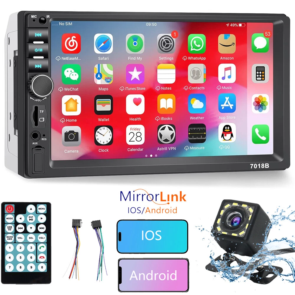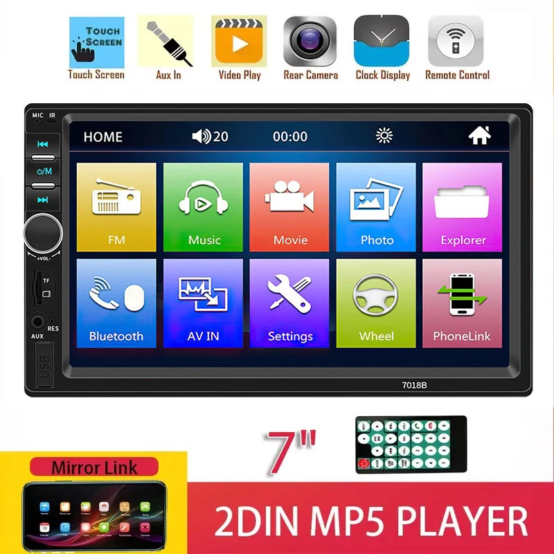 Does not fit models: 2004 Toyota Camry LE 4 door sedan 2.4L 2362CC l4 GAS DOHC naturally aspirated 2016 Toyota Camry SE 4-Door Sedan 2.5L 2494CC 152Cu. 4-Door 2.5L 2494CC 152Cu. 2009 Lexus IS250 Base 4-Door Sedan 2.5L 2499CC V6 Gas DOHC Naturally Aspirated 2007 Ford Freestyle Limited Wagon 4-Door 3.0L 2968CC 181Cu. In. V6 Gasoline DOHC Naturally Aspirated 2009 Jeep Compass Sport 4-Door Sport Utility Vehicle 2.4L 2360CC 144Cu. In. 2007 pontiac g6 2003 Camry 1997 Toyota Corolla 2010 Ford Explorer XLT About this item: Touchscreen Display: 7-inch touchscreen with Android operating system for easy navigation and control. Bluetooth Connectivity: Built-in Bluetooth 5.0 allows wireless connections to smartphones and other devices. Backup Camera: Integrated backup camera with 7-inch display for safe parking and driving. Multimedia Capabilities: Supports MP3, WMA, AVI, and XVID audio and video formats for entertainment. Smartphone Control: Use your smartphone as a remote control for the car stereo system. Installation Dimensions: 180*102 *62mm/7 *4 *2.44 inch MP5 Package Included: 1 x Multimedia Player Host 2 x Power Cable 1 x Remote Controller 1 x Rear View Backup Camera 1 x English User Manual Product Description Double Din Car Stereo with Bluetooth Car Radio 7 Inch Touchscreen Car Stereo with Backup Camera Phone Mirror Link Function:Mirror Link through phone's original USB line can synchronize to the onboard screen. Through mirror-link, the car stereo will display the content from your cellphone screen synchronously. Turn on the navigation app on your phone, you will be able to use the navigation function in your car while driving. Rear View Camera Input:Double din head unit with backup camera, camera has a 170° wide-angle lens and waterproof, supports automatic display of image. when the vehicle shifts into reverse,the car radio screen will automatically display the reverse image and record the traffic, make your daily reversing safer and more convenient. Bluetooth Link/FM Radio:This Bluetooth car stereo provides a more stable connection to your cell phone, enhances the quality of your calls and allows you to enjoy high quality music!( built-in clear mic) FM radio can receive music, weather and many other radio stations, and save your favorite stations. Add more fun to your boring driving. Fast Charging:Supports USB flash drive/TF Card/U disk transmission up to 32 GB for music and video playback on this car radio. The Aux Input allows you to connect to the audio output of an external device, connect an Mp3 player or smartphone via AUX port, it is easy to enjoy your favorite musics all the time. Fast charging is also possible via AUX wired connection. 7-color back-light makes the car more cool. 7 Inch Double Din Radio:The 7-inch LCD HD touchscreen provides you with a great experience when watching HD videos. The video image is clearly displayed and the touch screen is flexible for better operation. Please check the size of your car radio before ordering. Mirror Link Support Android phone and IOS phone mirroring link Use the USB cable to link the phone and car radio, you can mirror the screen on the phone to the ca radio Reversing Camera After installing the camera and double din car stereo correctly, the radio will display the reversing screen when reversing to help you reverse and make reversing easier. FM Radio FM channel range (87.5 ~ 108 MHz) Support auto/manual search for radio stations and store your favorite stations. You can also listen to news, weather and other radio stations while driving, so that driving is not boring. Bluetooth Calling The car stereo supports Bluetooth calling and has a stable Bluetooth link to give you a better calling environment. Multifunctional Interface The double din radio supports a variety of transmission, TF card slot can be inserted into the TF card to transmit audio. Steering Wheel Remote Control The double din stereo comes with a remote control that can be installed on the steering wheel so that you can switch between music and answer the phone while driving to ensure safe driving. Fast Charging The USB port on the radio supports fast charging. By connecting your phone to the car stereo with the USB cable, you can charge it quickly and no longer worry about your phone running out of battery. EQ Sound Quality With 16 built-in bands, you can choose your favorite sound effect for added driving pleasure. 7 Color Backlight The radio's button has 7 colors and can be switched to adjust different colors according to preference, making the car more interesting.