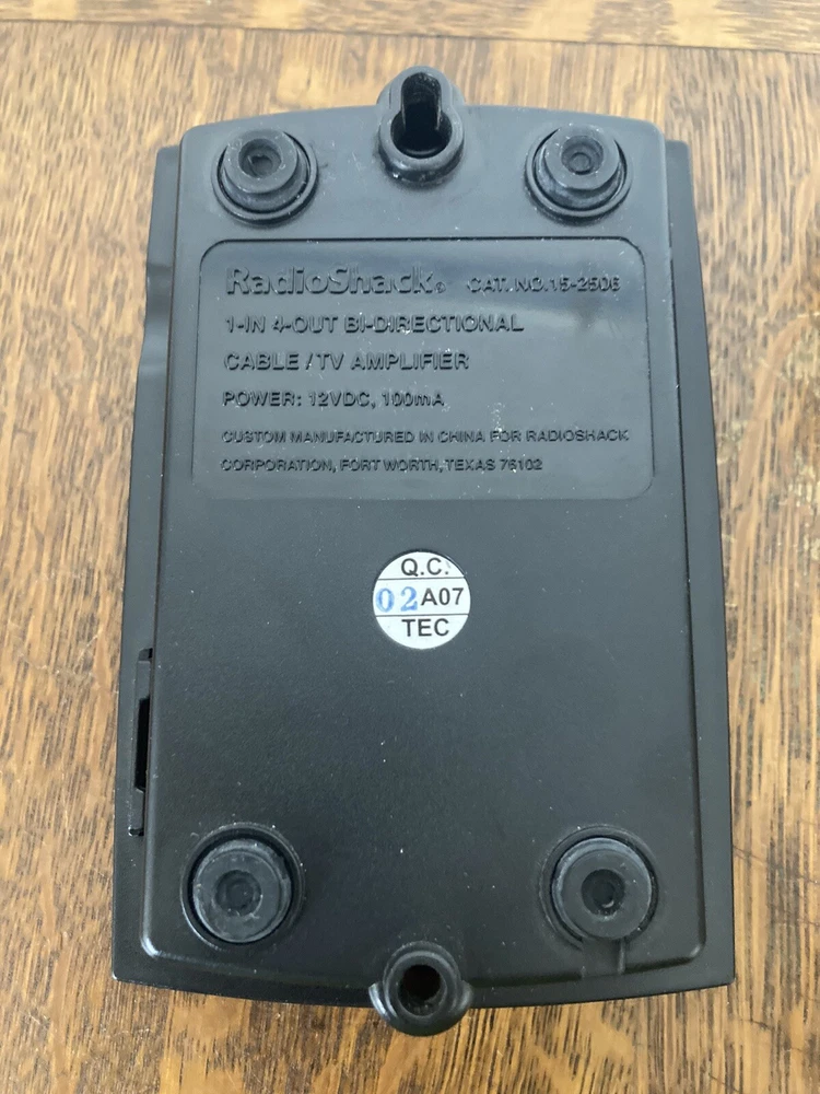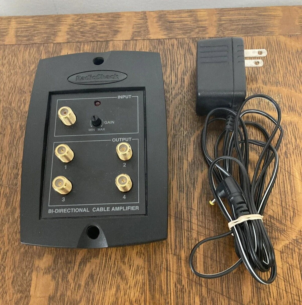 Amplify your TV and video signals with this high-quality RadioShack 1 in 4 out Bidirectional Distribution Amplifier 15-2506. With four outputs, you can easily split and distribute signals to multiple components without losing signal quality. This amplifier is perfect for home theater setups, video game consoles, and more. The RadioShack 15-2506 model is built to last with a sturdy design and high-quality components. It's easy to install and use, and ships for free. Get the most out of your entertainment system with this top-of-the-line distribution amplifier from RadioShack. With power cord. Please review all pictures for mor info. Shipped with tracking.