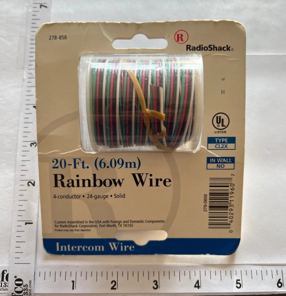 Radio Shack 24 Gauge Solid 4 Conductor Rainbow / Intercom Wire 20 Foot Roll CL2X. Item condition new. Packaging show signs of wear from storage. See pictures. Please message me with any questions. #A250N