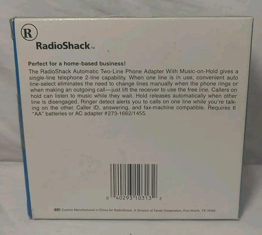 This Radio Shack 43-434 Automatic Two-line Phone Adapter is a must-have for anyone who wants to upgrade their home telephone system. With a cable length of 6 ft, this adapter offers a flat cable design and a two-way splitter feature, making it easy to connect to multiple devices. New in box