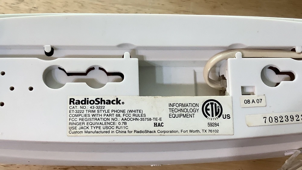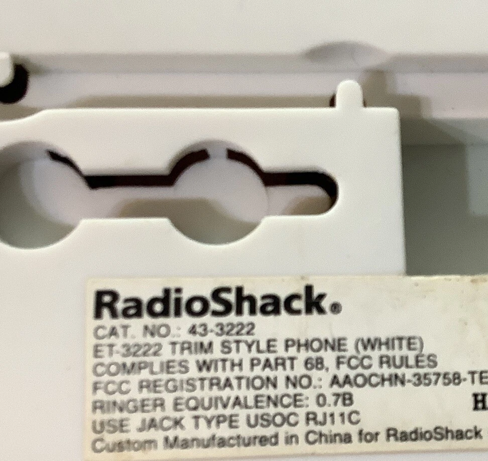 Radio Shack Corded Phone Model No. ET-3222 Single Line Corded Phone Beige