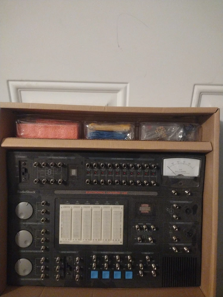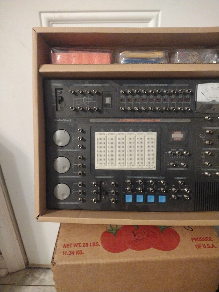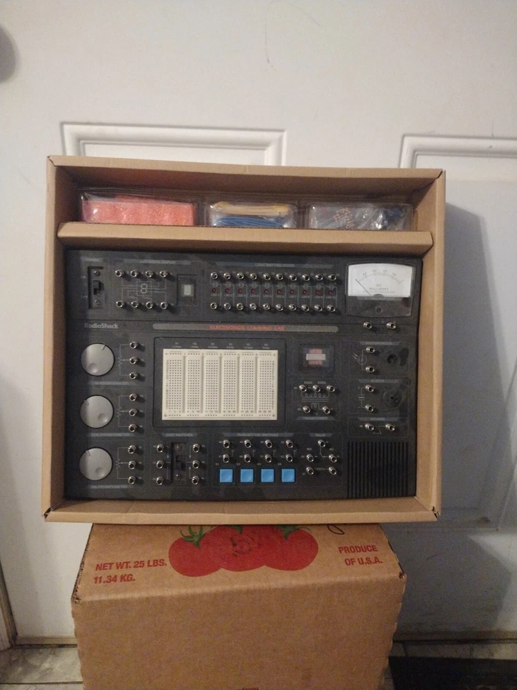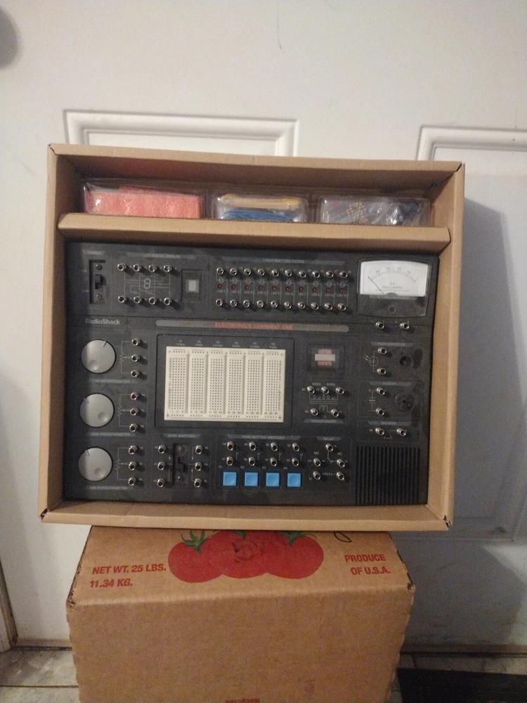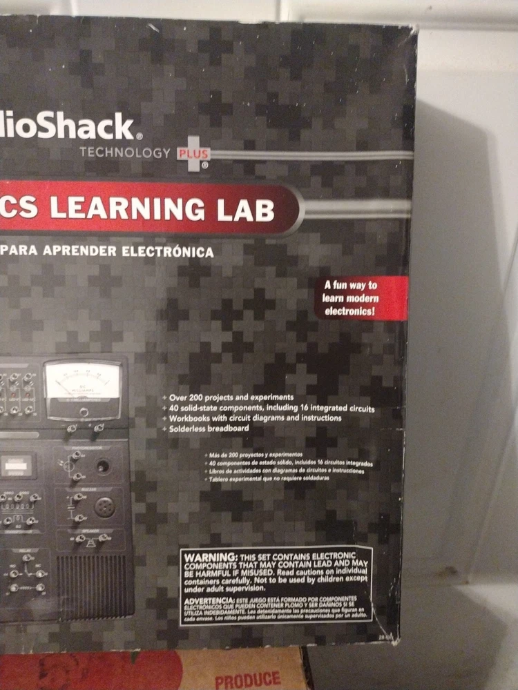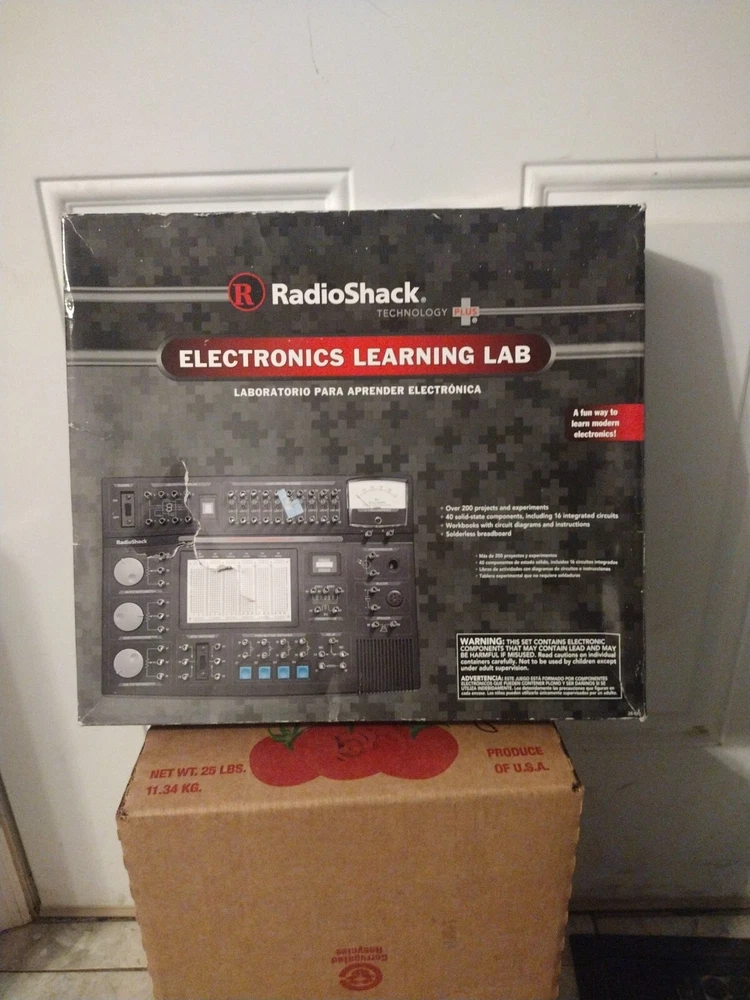 This is a complete and open box of the Radio Shack Electronics Learning Lab 28-027, perfect for STEM learning. The kit includes all necessary materials and components to explore the principles of electronics and electricity. It is recommended for ages 10 and up, with an age level of 12-16 years and 17 years & up. The brand of this kit is RadioShack and it was manufactured in China. It falls under the categories of Toys & Hobbies, Educational, Science & Nature, and Electronics & Electricity. This kit is a great way to learn about electronics and electricity, and is perfect for anyone interested in the topic.