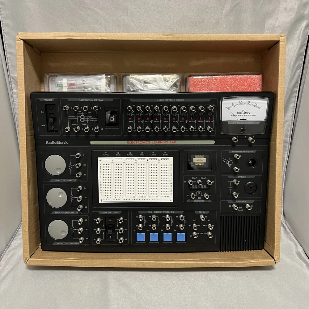 New Radio Shack Electronics Learning Lab Kit, Model #2800055. Ideal for circuit experiments and beginners in electronics.