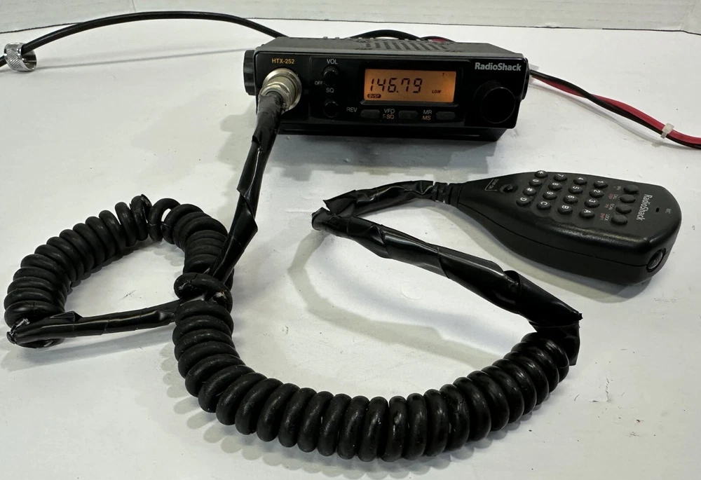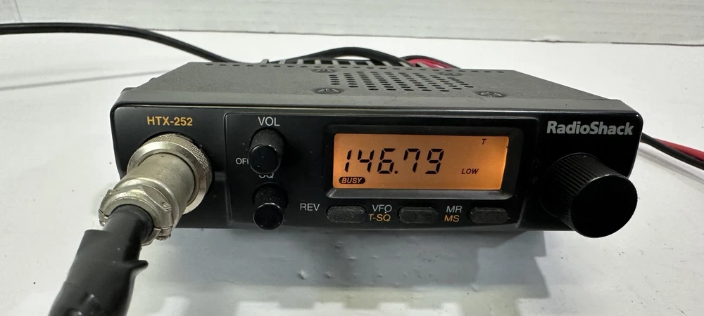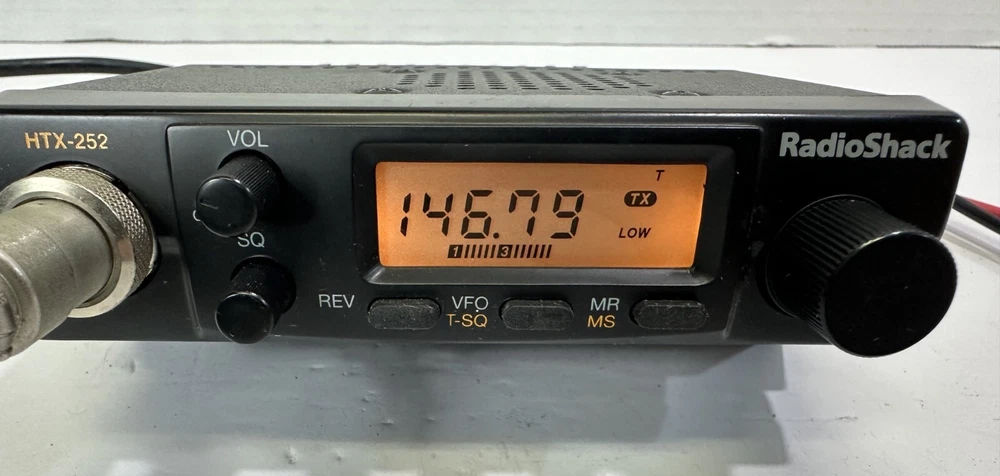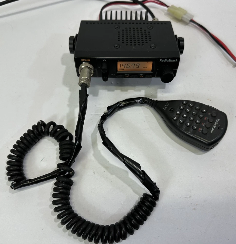 ITEM: Radio Shack HTX 252 compact portable Ham Radio Transceiver. 2 Meter, selectable 10 or 25 watt output, FM/VHF, 144-148 MHz TX, 136-174 MHz Rx, 16 key DTMF microphone. No power cord extension. Serial Number 220573. Owner's manual avialable for free download through various online sites. SIZE: Unit is approximately 5.5" x 5.1" x 1.25". Weighs 1 lb 14 oz before packaging CONDITION: Powers up, receives and transmits. Normal cosmetic wear. Black electrical tape on mic cord, mic works properly. This unit was purchased as part of a large vintage electronics estate collection and has been in storage for years. We have tested this to the best of our abilities. WE ARE NOT HAM RADIO/CB EXPERTS, therefore, this unit has not been fully tested. The new owner may and could incur additional costs to get this unit in top working condition. Please take this into account when bidding or purchasing. THIS ITEM IS BEING SOLD AS-IS. PLEASE no requests for returns, adjustments or order cancellations on this vintage electronic. As with all our vintage electronics we have no stated or implied warranties. Any light spots are reflections from lighting. PLEASE VIEW ALL PHOTOS AS WE CONSIDER THEM TO BE PART OF THE CONDITION DESCRIPTION. We will gladly combine items to save on shipping! Thanks for looking and Good Luck Bidding!!!! If you have questions, please ask before bidding/purchasing. Please Note: Many of our items are pre-owned. Please be sure to check out our Condition Description. PLEASE NOTE: In order to be fair to all bidders, we do not end auctions early or change them from auction format to a Buy It Now format. RETURN POLICY: We describe our listings as carefully as possible and will accept returns only for flaws not mentioned in the description. The items we sell are largely antique or vintage and, as such, have been used during their lifetime. If there is something we have missed or a detail we have not addressed in the listing, please contact us through e-Bay and we will do our best to address any concerns that you might have. When refunds are appropriate we will happily refund your purchase amount. INSURANCE: We insure all items that we ship. If a claim is necessary, buyers are expected to assist in the claim process. INTERNATIONAL BIDDERS: We use eBay's International Shipping service for all international sales