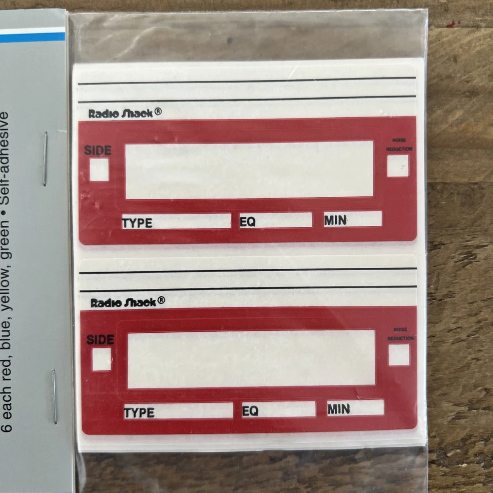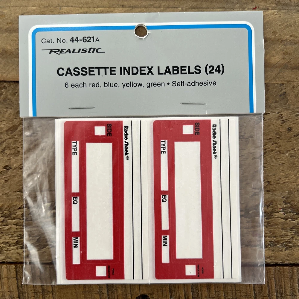 Radio Shack Realistic Cassette Index Labels 44-621A 24 Count 6 Rd,Blu,Yell,Grn