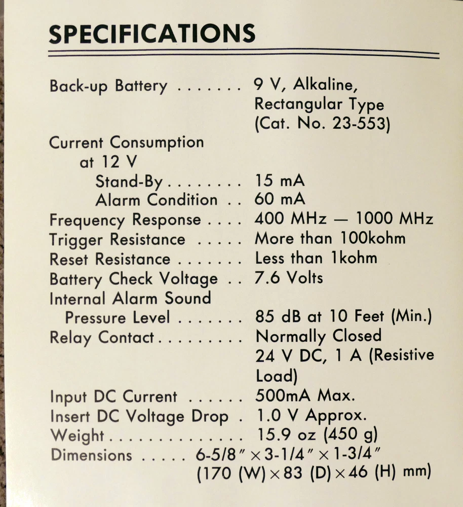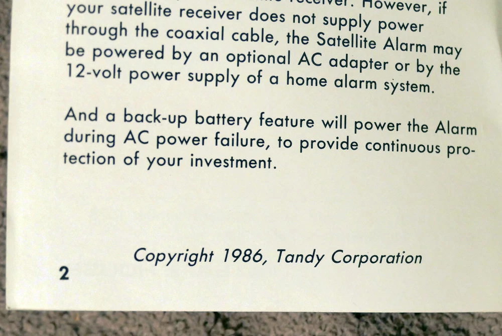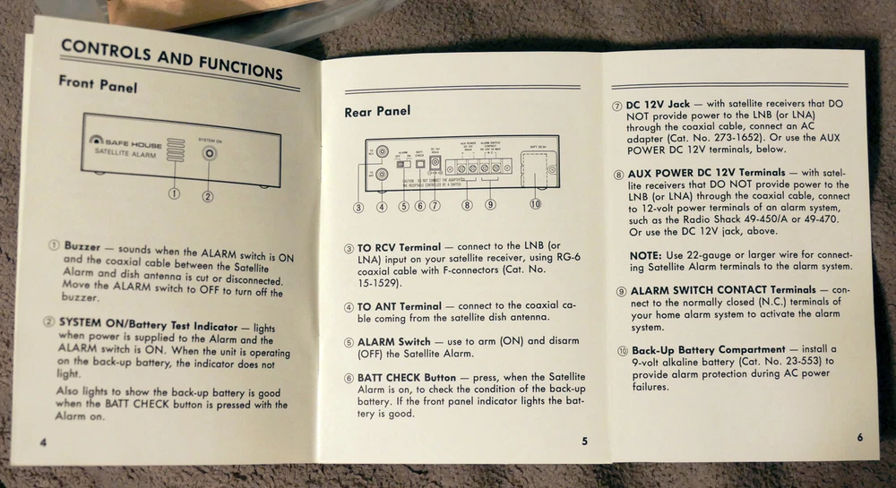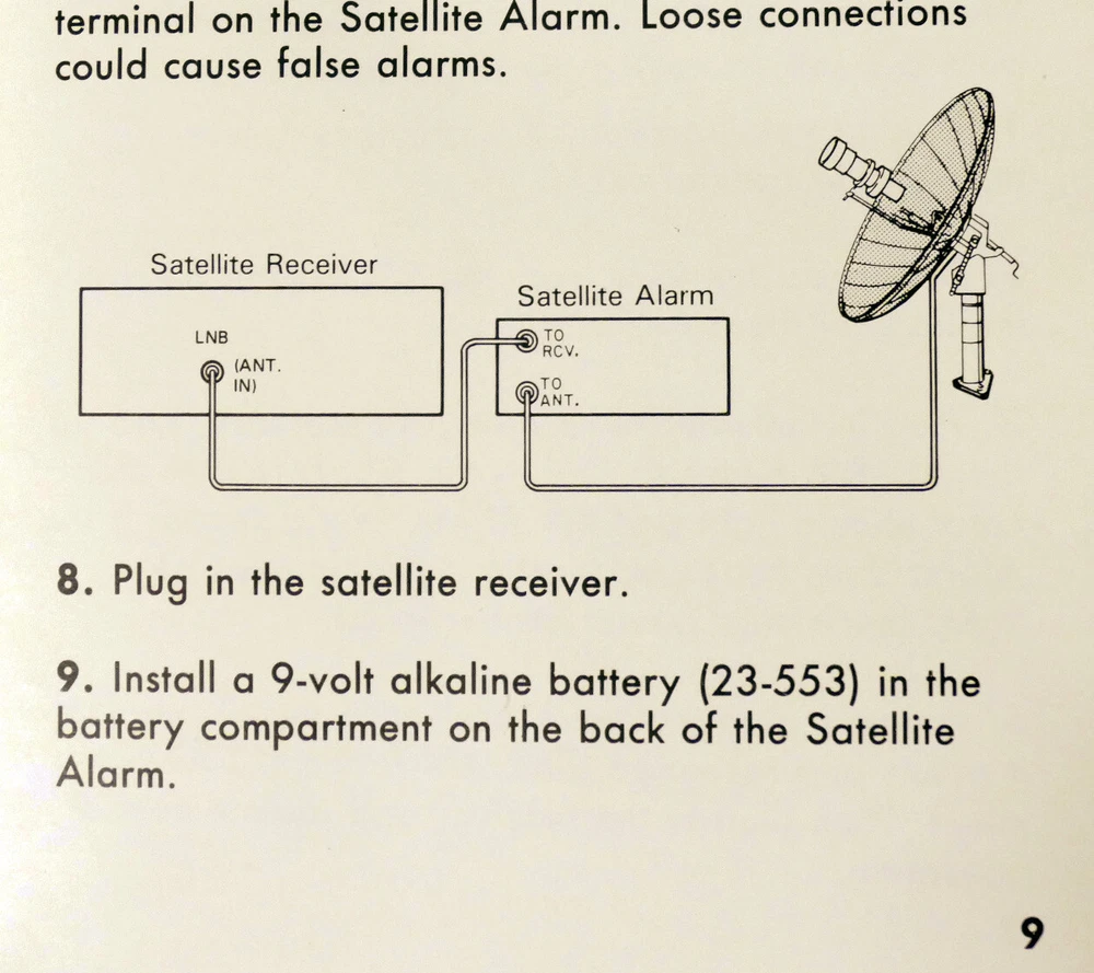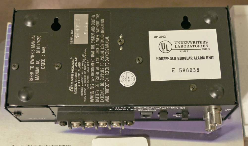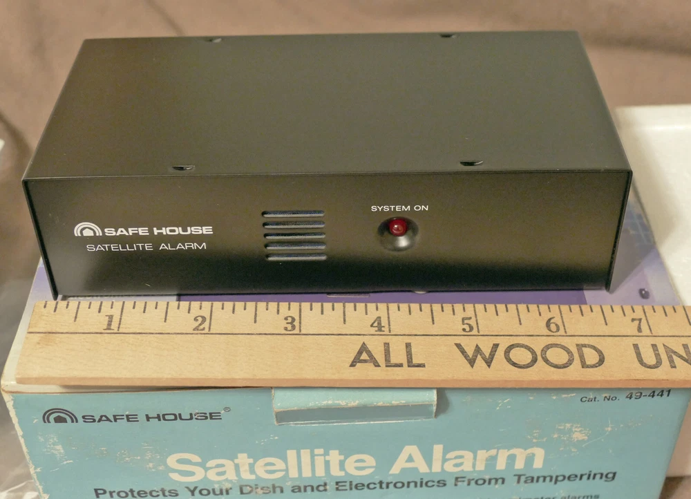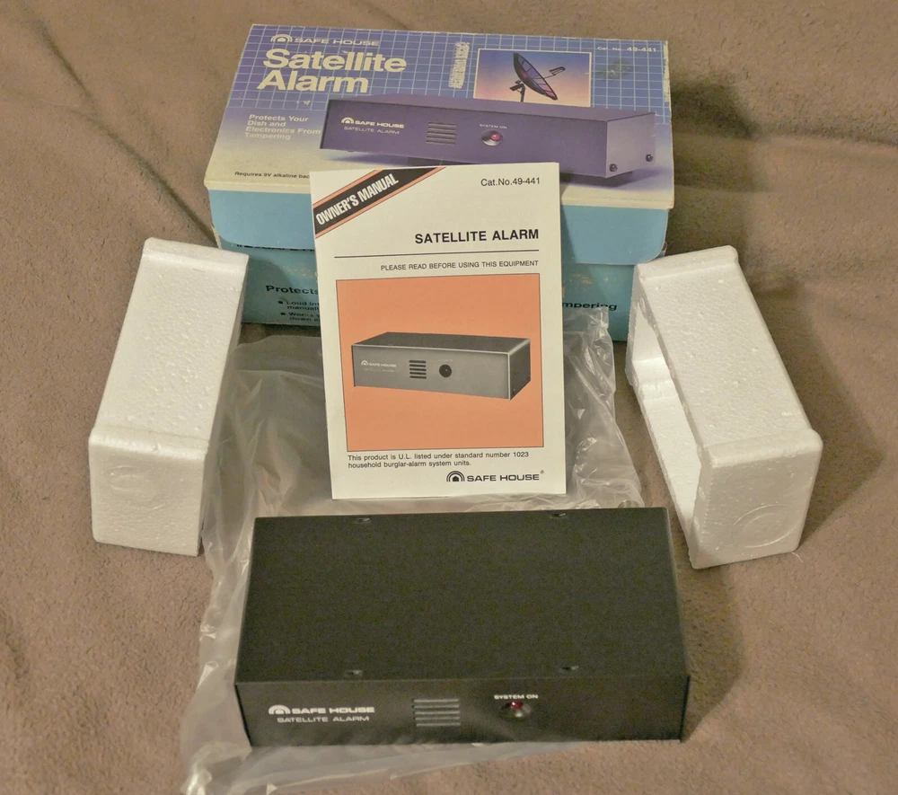 Vintage Radio Shack Satellite Alarm. All-metal enclosure, no plastics. I personally bought a few of these 30 years ago when they were discontinued by Radio Shack. These were sold when satellite dishes were 10ft-15ft across and cost $1500 to $3000 or more. The alarm circuitry is fairly complex and works by sending a continuous current through the coax cable. If the circuit was interrupted, i.e. disconnected, this unit will omit an 85db alarm. If the cable is disconnected and then reconnected, the alarm will still continue to sound. The only way the alarm can be silenced is by cycling the ON-OFF switch on the actual unit. These alarms have been, and are, used as theft alarms at trade shows. A coax cable is run through merchandise susceptible to theft and each end of the cable is then attached to the alarm. Anyone disconnecting the cable will set off the alarm. It will run for 240 hrs on a 9V battery, the alarm does not have to be connected to an AC source. These alarms have been stored in sealed Rubbermaid containers in a non-smoking environment. When taken out of the box and unwrapped, the unit still has a new-electronics smell. TERMS: U.S. sales only, no international sales. No sales to anyone registered outside of the U.S. No APO/FPO or US possessions. No shipping to a forwarding company. PAYPAL only. Cash only for local pickup. SHIPPING: $11 for USPS Priority Mail with delivery confirmation.
