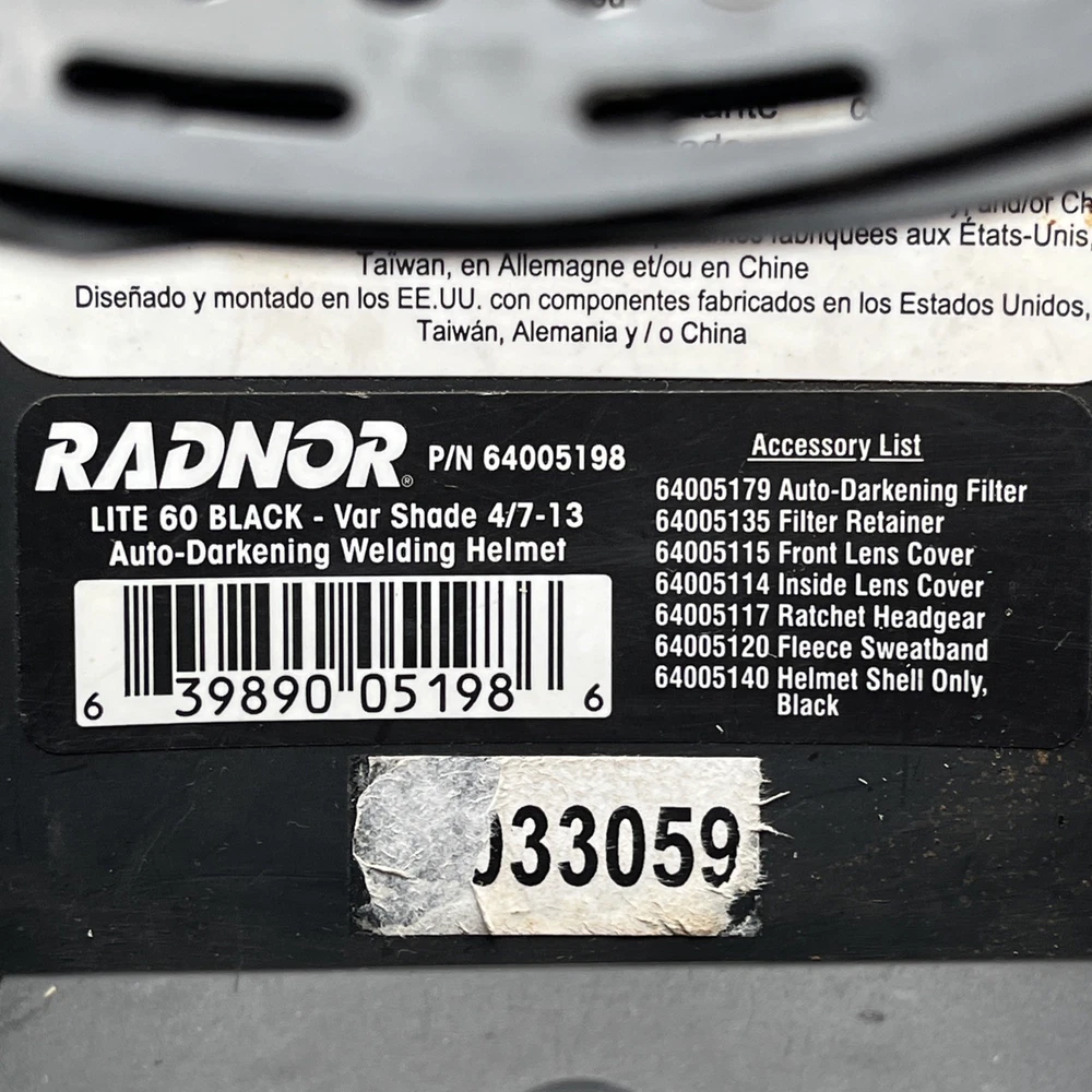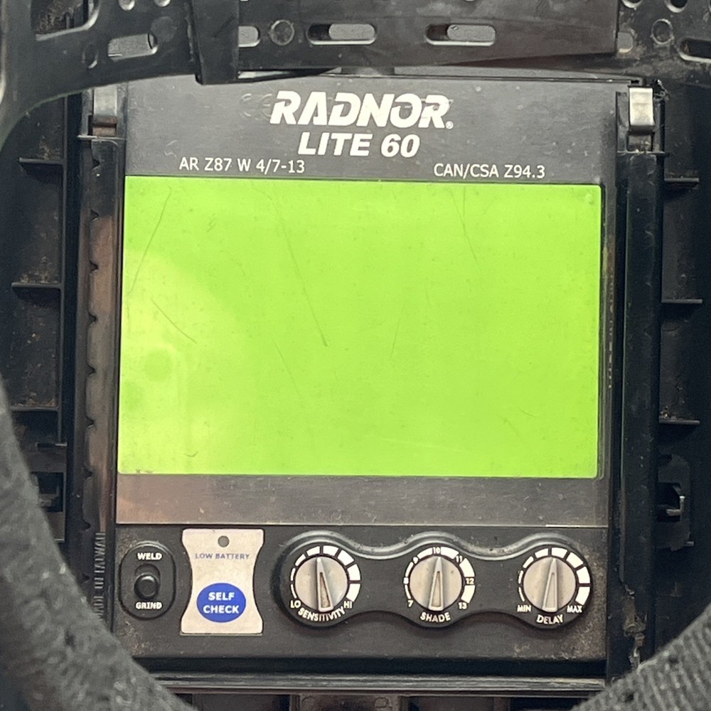 Model: LITE 60 Black ✅ Part Number: 64005198 ✅ Type: Auto-Darkening Welding Helmet ✅ Shade Range: 4 / 7–13 ✅ Condition: Pre-owned, tested and working. Lens reacts properly to bright light. This helmet shows some cosmetic wear from use (see photos), but functions as intended.