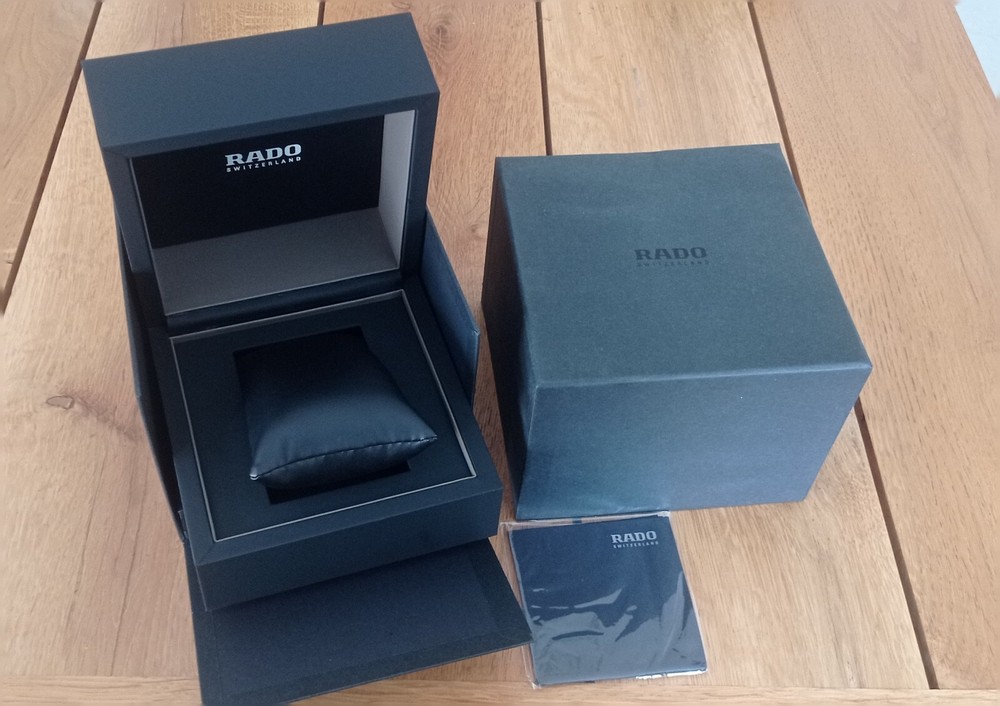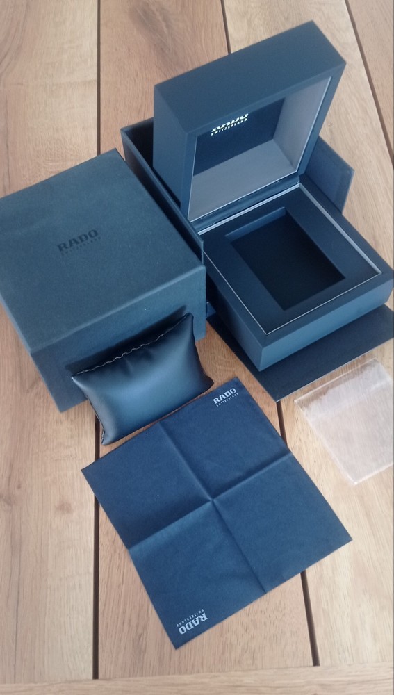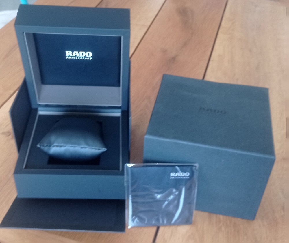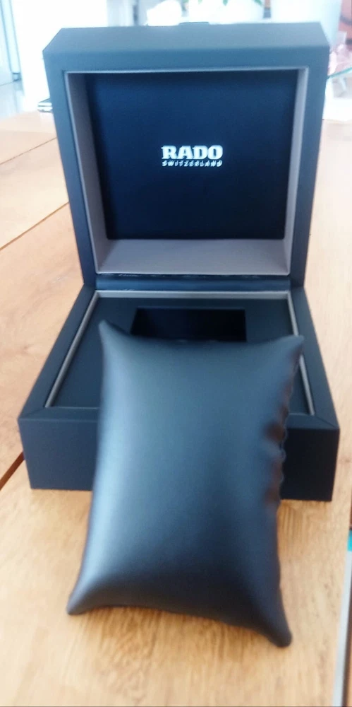 This Rado watch box is the perfect addition to any watch collection. Crafted in Switzerland from high-quality wood, it is durable and stylish. The box is designed to hold Rado watches and features the model number 395116. It is a great gift for any watch enthusiast or collector. The box has not been modified and is in its original form.