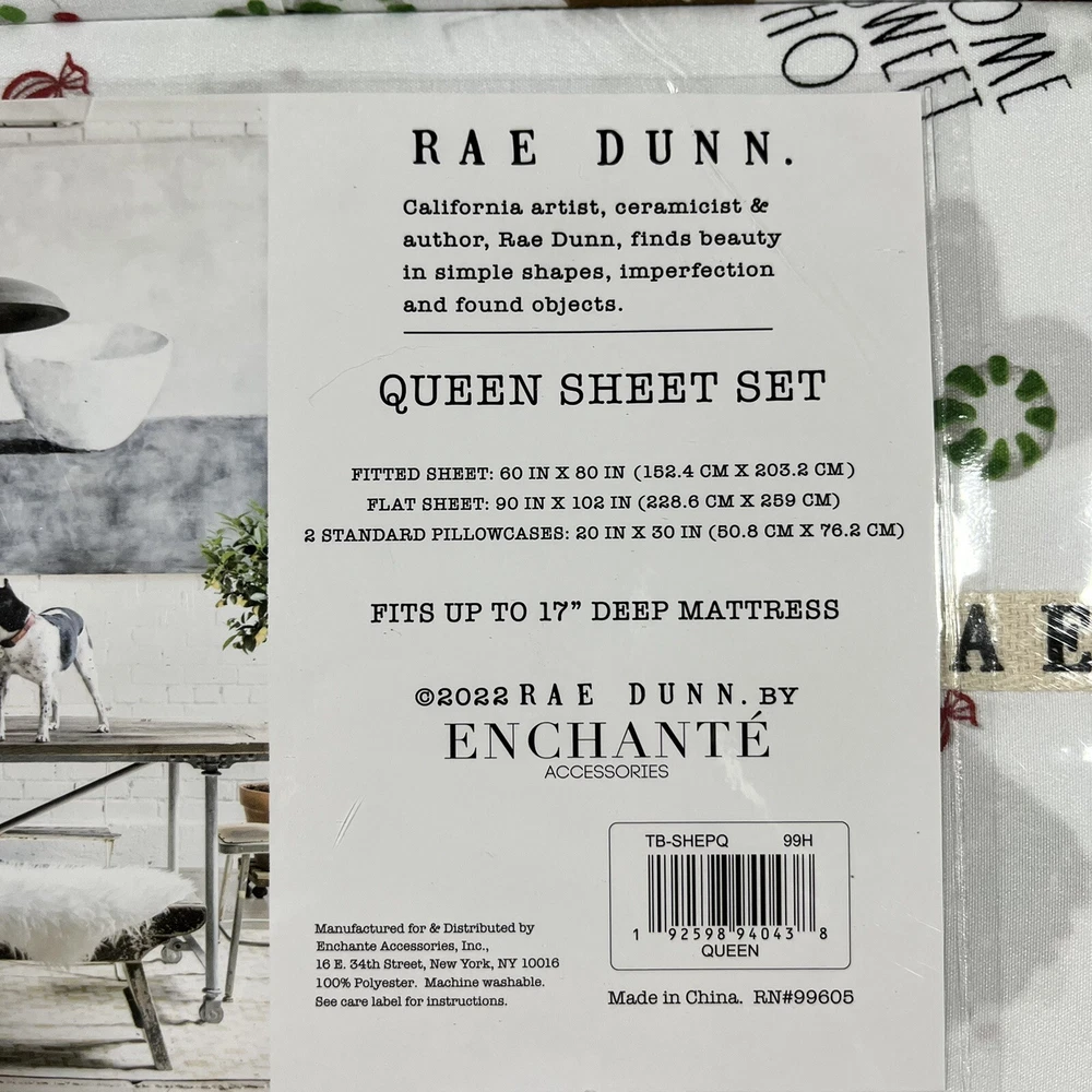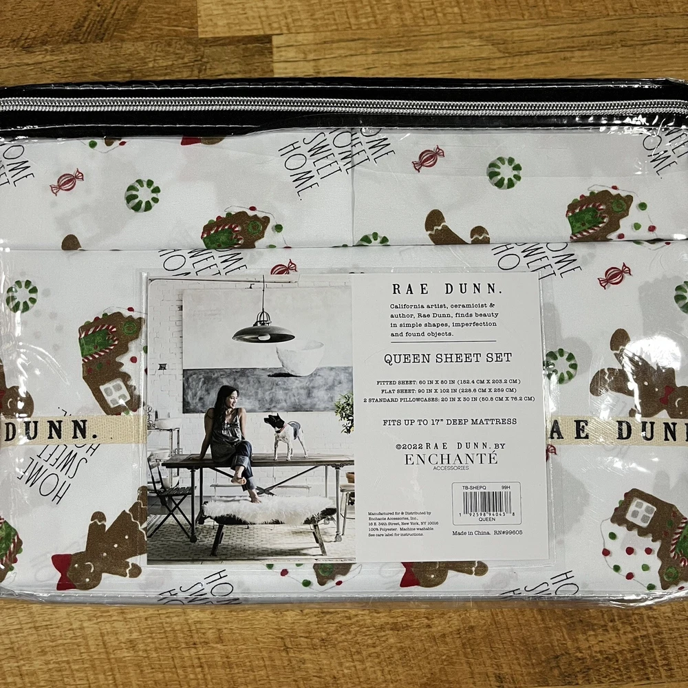 Rae Dunn Christmas QUEEN Size Sheet Set Home Sweet Home Gingerbread Man Cookie