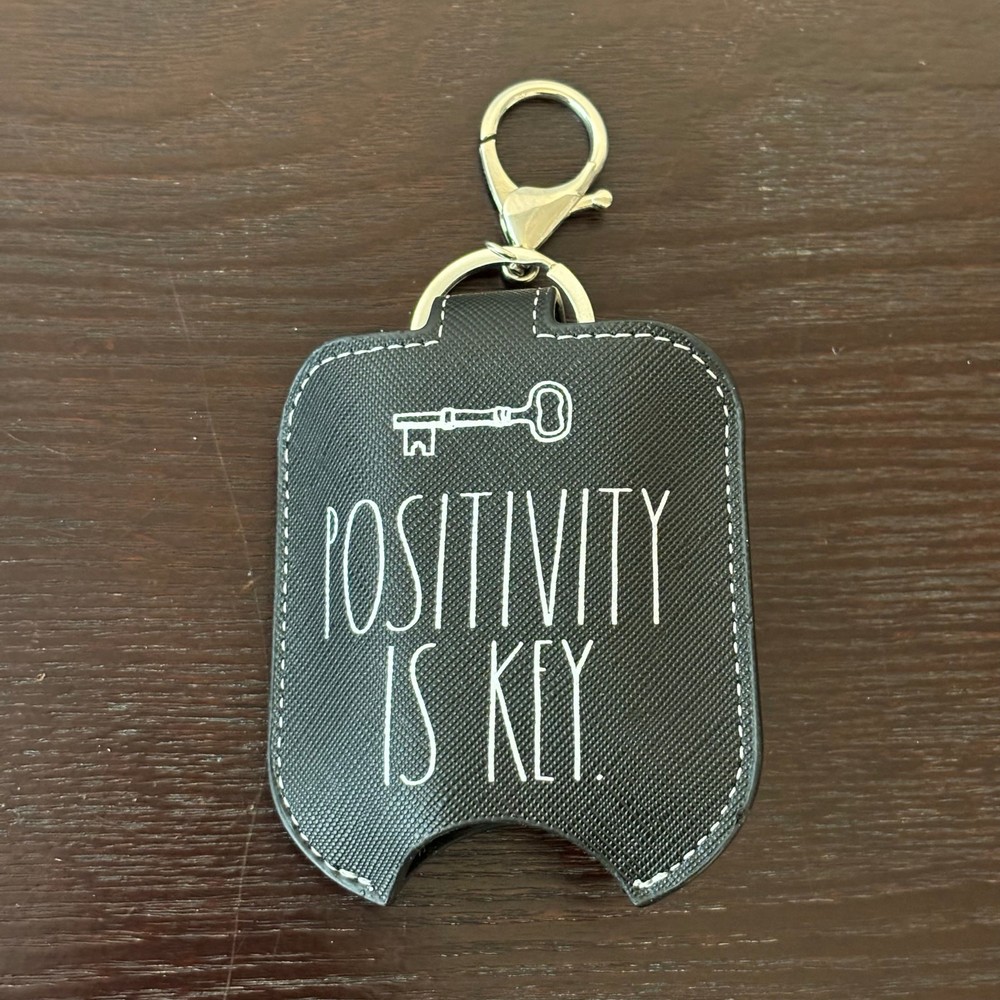 NEW without Tags, Sanitizer NOT included Rae Dunn Hand Sanitizer Holder Positivity is Key Black White Keychain Fits mini sanitizers from Bath & Body Works !!! Faux Leather #radunn #keychain #positivity #accessories H83