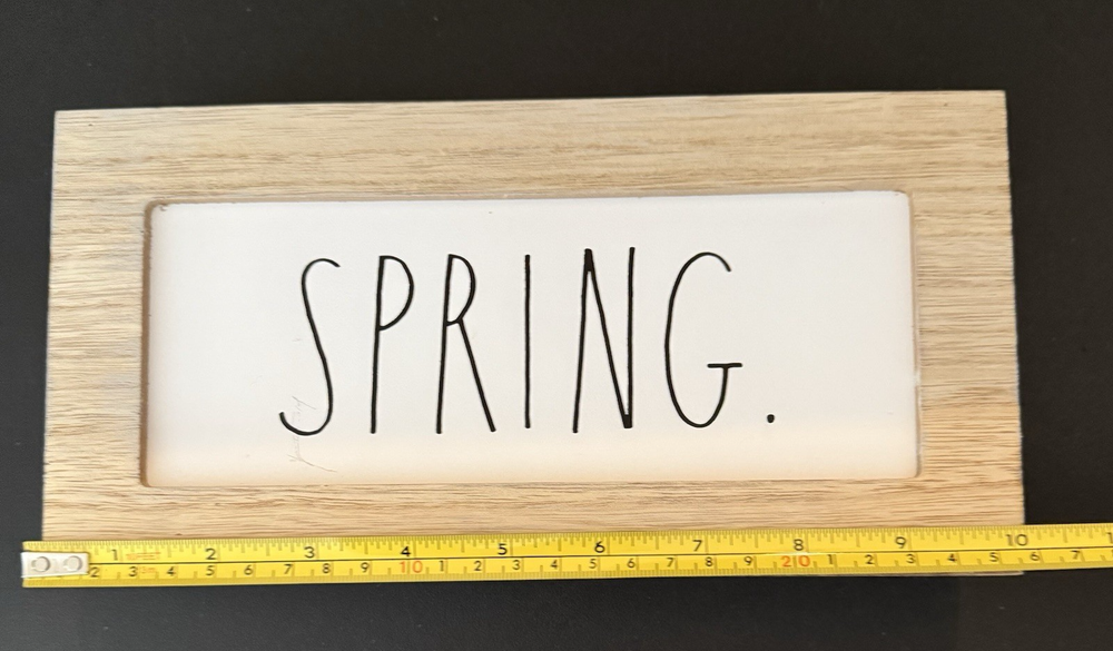 The Rae Dunn "SPRING" White Washed Wood Sign is a stylish and farmhouse-themed addition to any room. Measuring 10 x 5 x 2 inches, this rectangular sign features a white color and is made of wood. It showcases a spring-themed design, making it a perfect decorative piece for your home or garden. With its minimalist and clean aesthetic, this sign is sure to add a touch of freshness and charm to your space.