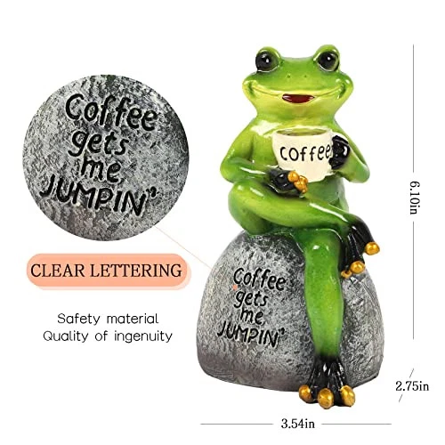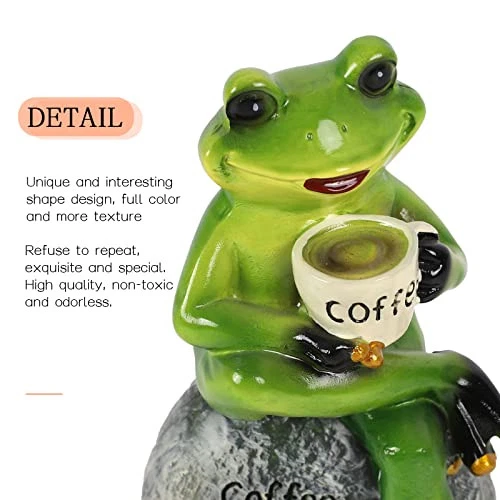 30 Days Return Policy Fast Delivery Trusted seller Raeasily Frog Decor Resin Statues- 1 Set Decorations for Garden Outdoor Statues,Funny Indoor Decor,6 Inch Creative Tabletop Lovely Home Accessories Product Description MEDIUM SIZE - Measures 5.9 x 3.54 x 2.75 making the frog decorations for yard, garden frog decoration and terrariums . CAREFUL PACKAING - Don't worry about the damage of frog accessories caused by express transportation. DESIGN & PAINTED - Well known designers design carefully to make your frog statue different.Painted with UV/Waterproof coating. CUTE GIFT - No one will refuse a frog with coffee. It's also great to decorate such a lovely frog figurines home decor as a gift. MATERIAL AND WEIGHT - The frog is an interesting outdoor decoration. It weighs about 0.44 pounds. The frog is made of resin. Shipping Returns Payment Shipping Shipping is FREE to all addresses other than APO/PO boxes in the lower 48 states. All our stock ships from US-based warehouses. Shipped via USPS or UPS (depending on location and package weight) Unless stated otherwise, all orders will ship within 24-72 hours of your payment being processed. Check our feedback to see the great reviews of FAST shipping we offer. Returns As our valued customer, we will do our best to make sure the product you receive arrives to you on time and as expected. If you are not satisfied with your purchase, please contact us within 30 days of receiving your order to process a return. Payment We currently accept payment via eBay managed payments only. Once payment is cleared, we will dispatch your shipment within 1-3 business days. Please refer to the "Shipping" tab for more information regarding shipping speed to your destination.