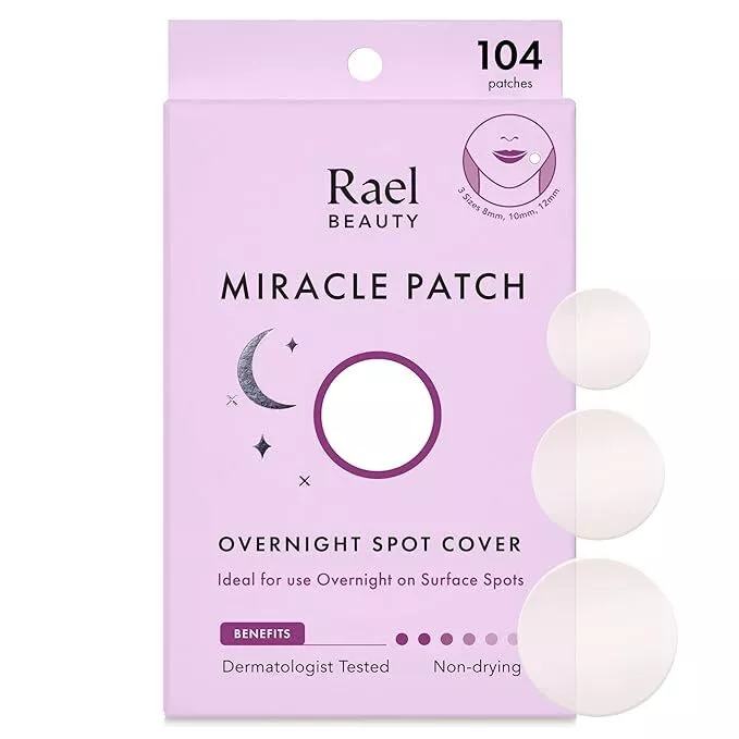 Rael Hydrocolloid Pimple Patches, Acne Patch Overnight Spot Cover (104 Count) Rael Hydrocolloid Pimple Patches, Acne Patch Overnight Spot Cover (104 Count) DESIGNED FOR SLEEP - High-powered hydrocolloid is extra adhesive and stays on all night. Comes in 3 sizes (8mm, 10mm, 12mm) EFFECTIVE CARE - Gently draws out pus and impurities while you sleep. Made with medical-grade, highly absorbent hydrocolloid. Non-drying and hypoallergenic. SURFACED HOT SPOTS - Ideal for attacking hot spots on your skin’s surface. PROTECTS SKIN - Provides a protective barrier against irritants. POWERFULLY GENTLE - Dermatologist tested and safe to use on all skin types without drying or irritating. ? 1. Cleanse and Dry 2. Apply & Lightly Press 3. Usage 4. Aftercare Cleanse the affected area and let skin dry. Apply the patch to the affected area. Press down for 3 seconds to secure. Leave on overnight, remove and discard patch after. Follow up with Microcrystal Dark Spot Cover for post-blemish dark spots and hyperpigmentation. Microcrystal Spot Cover Invisible Spot Cover Overnight Spot Cover Spot Control Cover XL Spot Control Cover Microcrystal Dark Spot Cover Benefit For early stage, underground blemishes before they come to a head For surfaced acne and whiteheads For surfaced acne overnight with extra-adhesive For acne hot spots and clusters, especially around chin, nose, and cheeks For large acne hot spots and clusters on the face and body For post-acne dark spots and hyperpigmentation Count/Net Weight 9 Count (14mm) 96 Count (10mm, 12mm) 52 Count (8mm, 10mm, 12mm) 10 Count (31mm x 46mm) 6 Count (45mm x 70mm) 6 count (21mm x 15mm) Key Ingredients Tea Tree Oil, White Willow Bark Extract, Succinic Acid, Hyaluronic Acid Hydrocolloid Dressing Hydrocolloid Dressing Hydrocolloid Dressing Hydrocolloid Dressing Niacinamide, Tranexamic Acid, Broccoli Extract Recommended Application Time Minimum 2 hours. Can be used overnight. Minimum of 4-8 hours. Can be used overnight. Overnight Minimum of 4-8 hours. Can be used overnight. Minimum of 4-8 hours. Can be used overnight. Minimum 6 hours. Can be used overnight. Vegan, Cruelty Free V V V V V V Artificial Color & Fragrance Free V V V V V V Safe For All Skin Types & All Ages V V V V V V Payment Shipping Return Payments managed by eBay -Your item will be shipped after payment has been cleared U.S Standard free shipping: USPS First Class Package -Only 1 business day will take to ship your item out after receiving cleared 30days free returns: Domestic returns accepted -We only accept unwashed/unopened items for return. -After receiving the item, a buyer should contact the seller within 30days. -Return shipping will be paid by the seller when the seller has responsibility for it. Listing and template services provided by inkFrog