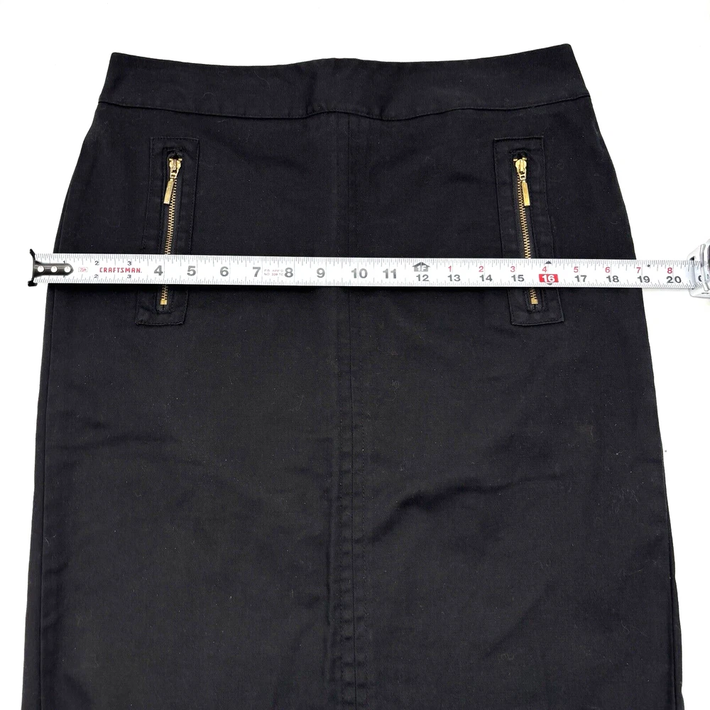 Rafaella Black Pencil Skirt 63% Cotton, 34% Polyester, 3% Spandex Black Knee Length Flat Front 2 Zip Pockets Zip and Hook & Eye Closure on Back Unlined 8" Slit On Back Hem Moderate Stretch! Women's Size 6 Please refer to measurements below to ensure accurate fit before purchase! 15" waist (30" circumference) 19" hips 18.5" hem 23" full length from waist to hem Measurements made with garment laying flat. Excellent pre owned condition. Very gently owned. No rips, tears, stains, holes or other notable flaws. Clean and from a smoke free home.