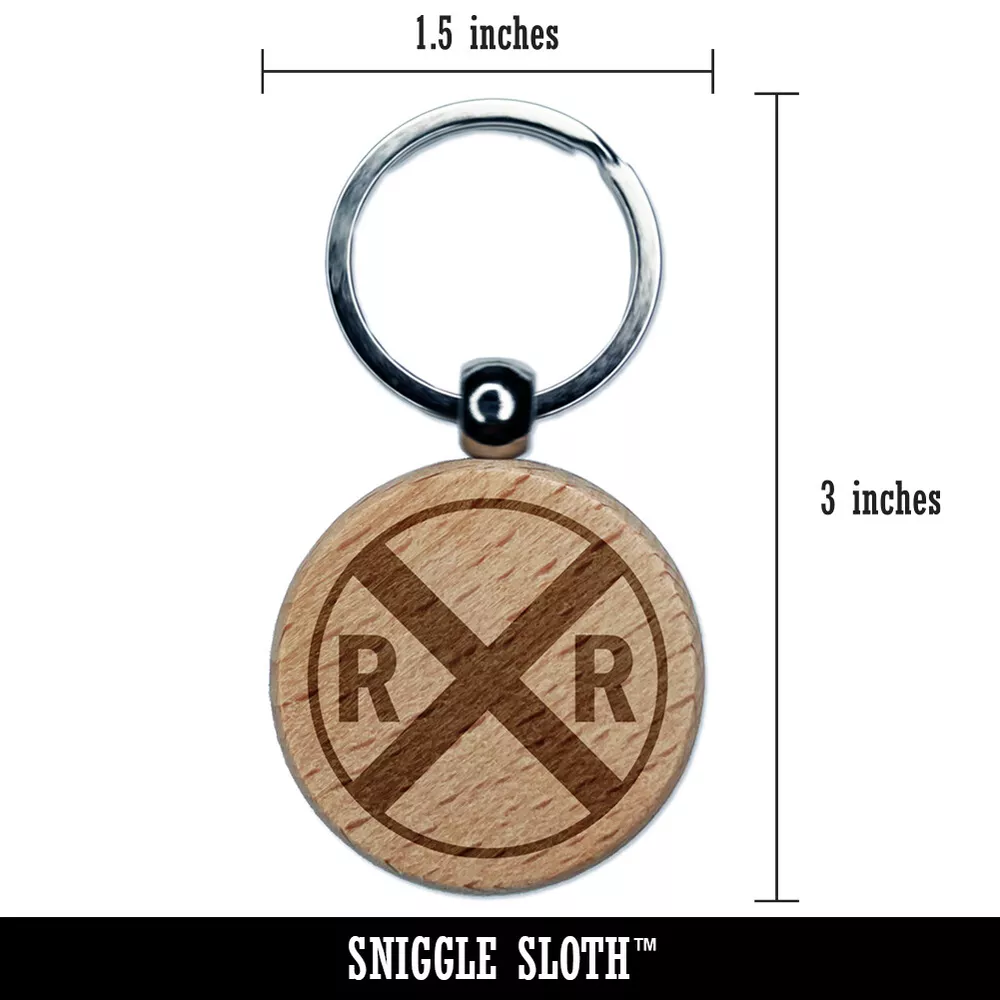 Railroad Crossing Train Engraved Wood Round Keychain Tag Charm