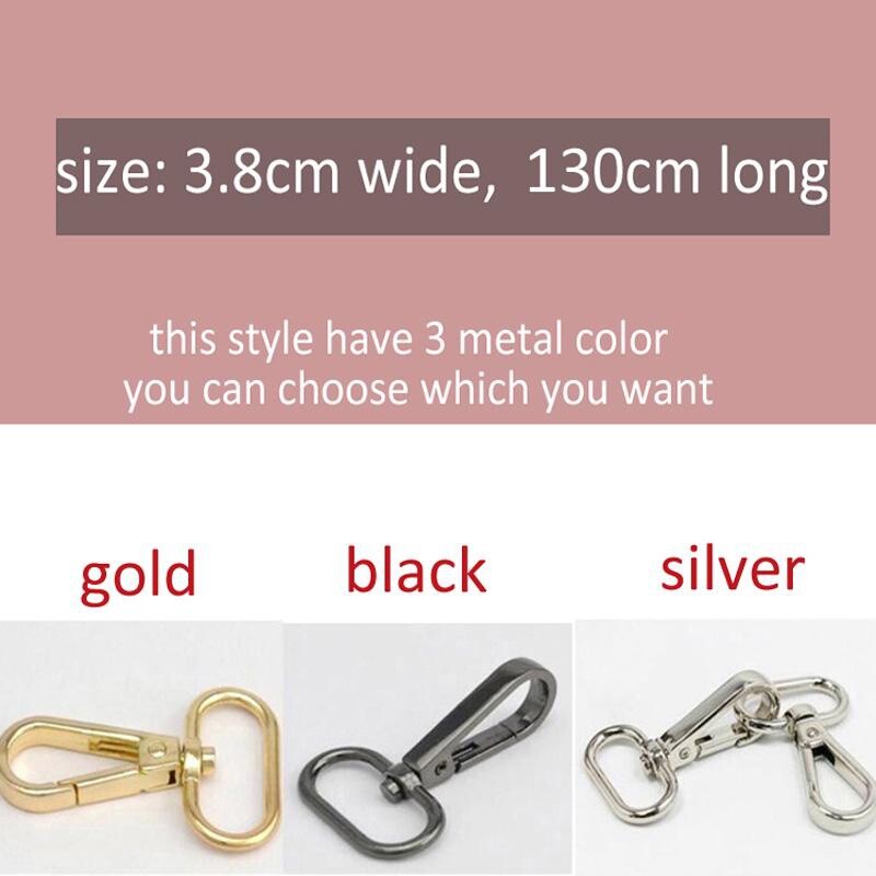 Item: Bag Strap Material: Polyester + Metal Buckle Size: 3.8cm Wide, 130cm long Metal Color: gold , silver, black Note: Please allow 1-2cm error for Manual measurement, Slight color difference due to shooting light and monitor. Thank you for your understanding!