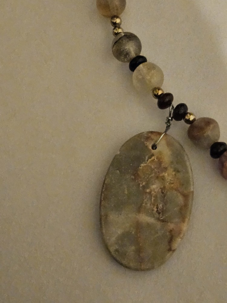 This necklace is absolutely stunning! The mix of rainbow fluorite, black agate, and redline marble creates a gorgeous, eye-catching look. The gray agate pendant is a perfect centerpiece, and the 18-inch beaded chain adds elegance. The craftsmanship is top-notch—every detail feels intentional. It’s unique, stylish, and definitely a conversation starter. Love it for both casual and dressy outfits!