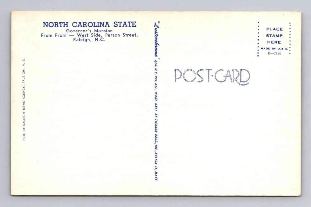 Raleigh NC-North Carolina, Governor's Mansion, Antique, Vintage Postcard