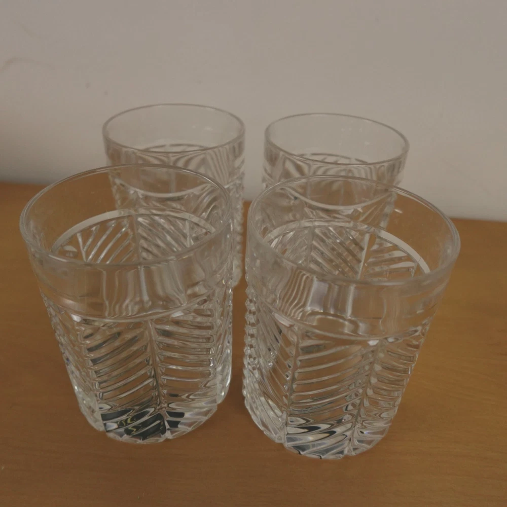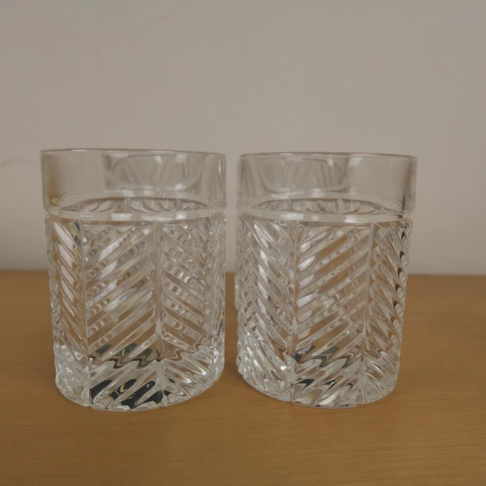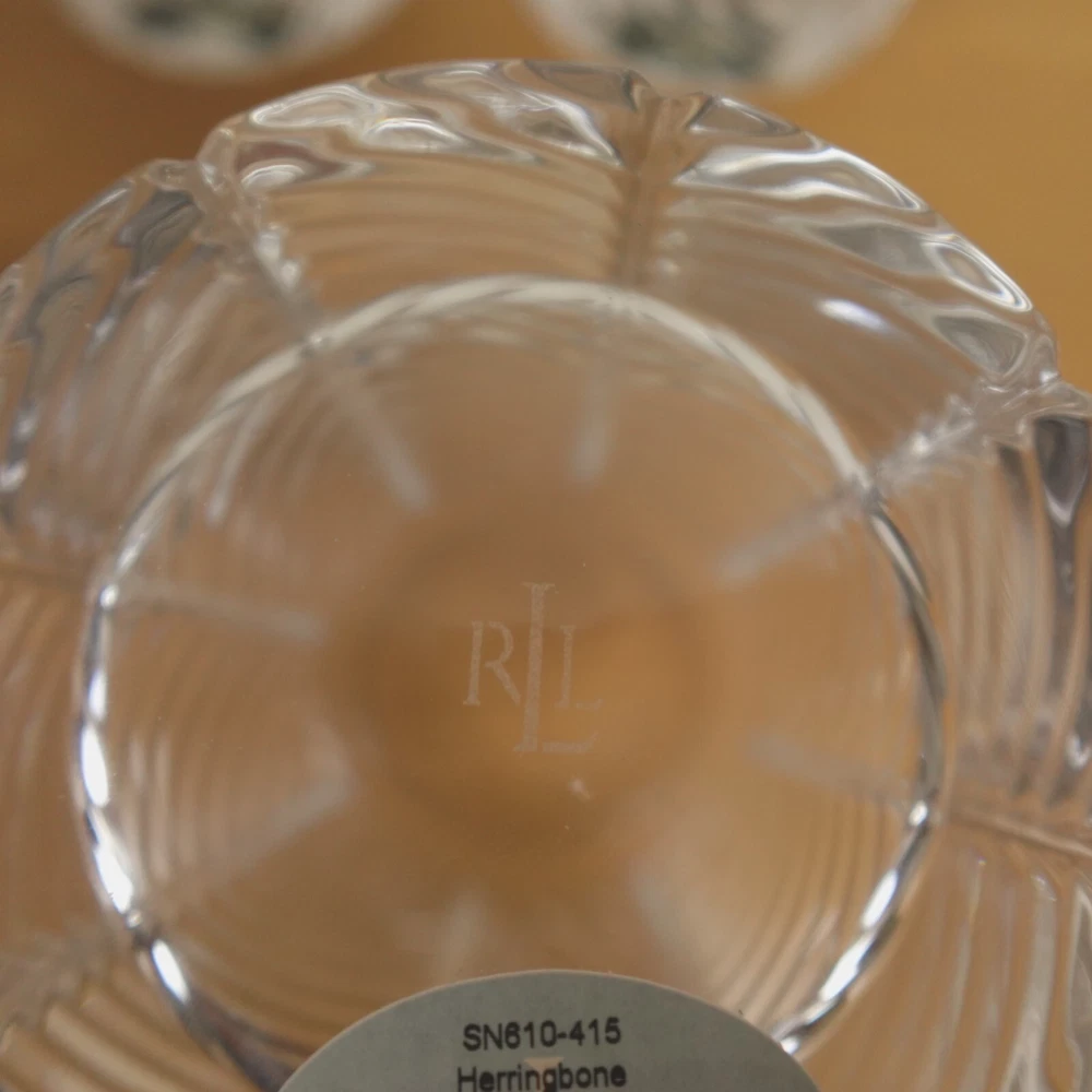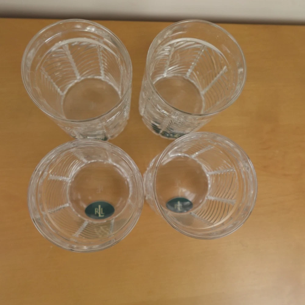 Ralph Lauren Herringbone Glasses Double Old Fashioned Lead Crystal Set of 4 Made in Germany New In Original Box Etched Signed. Never used, discontinued design. Glasses still feature the original sticker on the bottom as pictured. No chips, blemishes, or signs of wear noted, please review all photos. See photos for measurements. If we missed something, don't worry, we offer free returns in original condition. Just indicate, "just didn't like it," for any reason, and we'll pay for the return. Will be professionally packaged for safe delivery. I have 4 additional sets of 4 (16 glasses total) highball glasses, please see my other listings if interested. Thanks for visiting!