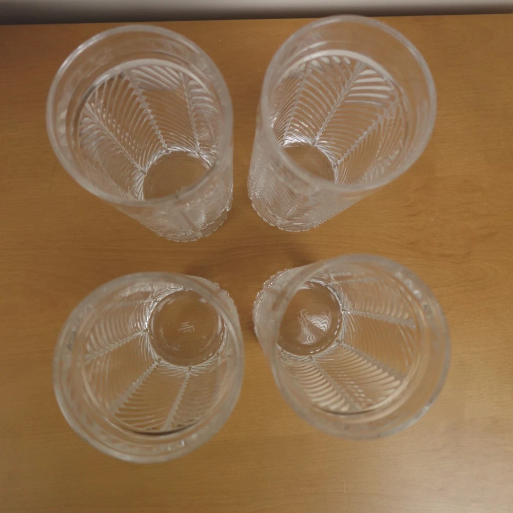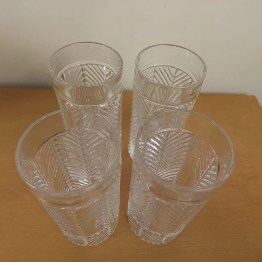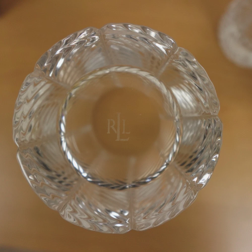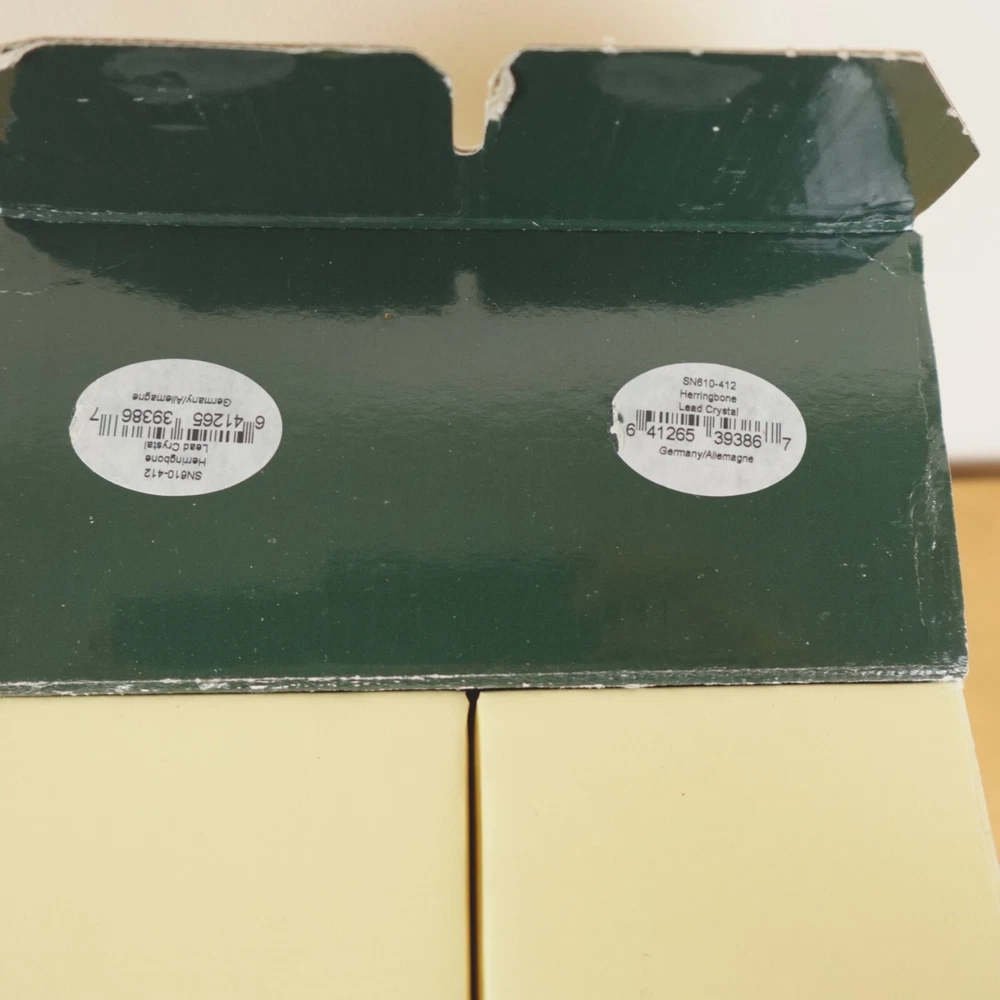 Ralph Lauren Herringbone Glasses Highball Lead Crystal Set of 4 Made in Germany New In Original Box Etched Signed. Never used, discontinued design. No chips, blemishes, or signs of wear noted, please review all photos. See photos for measurements. If we missed something, don't worry, we offer free returns in original condition. Just indicate, "just didn't like it," for any reason, and we'll pay for the return. Will be professionally packaged for safe delivery. I have two additional sets of 4 (12 glasses total), please see my other listings if interested. Thanks for visiting!
