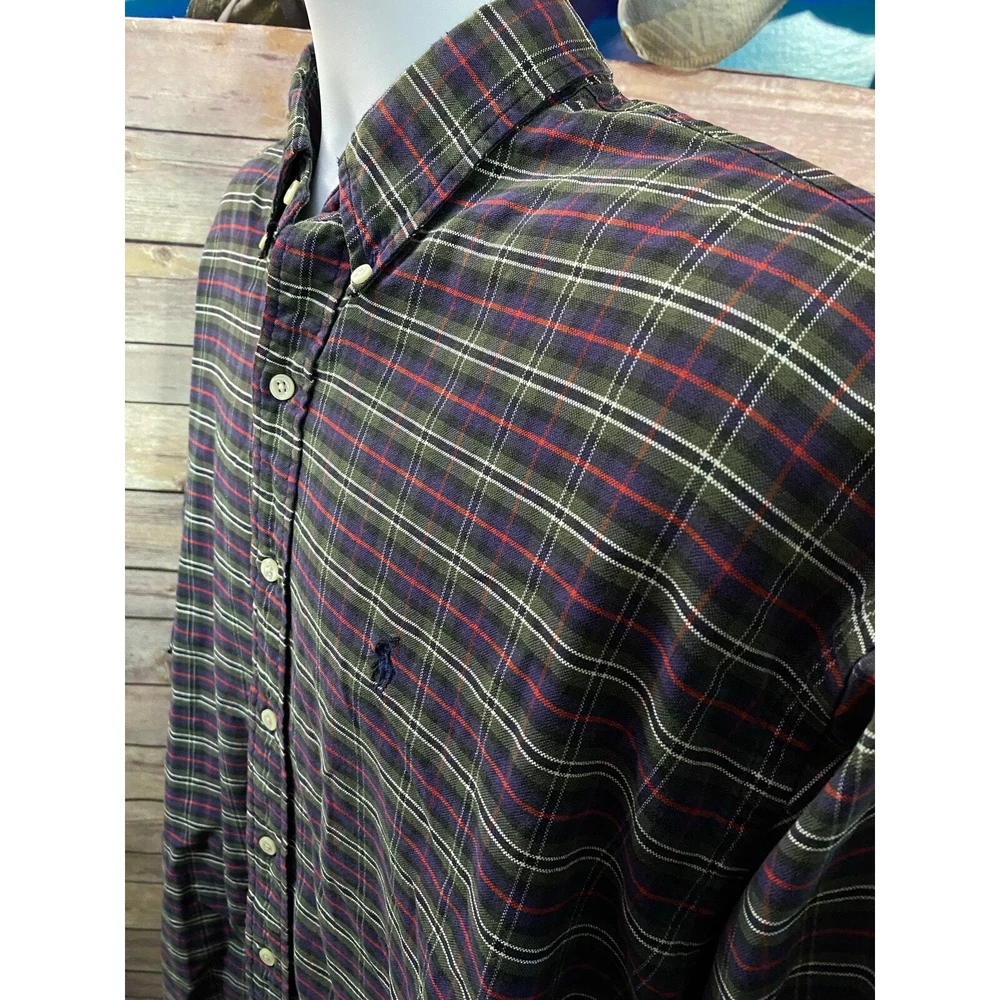 Polo ralph Lauren. Plaid green red. Size extra large. XL 100% cotton. Bundle and Save! Message me about multiple items to request a price for the whole lot! tiny hole near bottom: Please see the pictures for details. I try to highlight any known imperfections with close-up images. I focus on buying new or like new condition #PoloRalphLauren #RalphLauren #PoloStyle #ClassicStyle #PreppyFashion #FashionIcon #RalphLaurenFashion #PoloShirt #LuxeLifestyle #TimelessFashion #EverydayElegance #PoloLife #RalphLaurenCollection #LuxuryCasual #IconicFashion