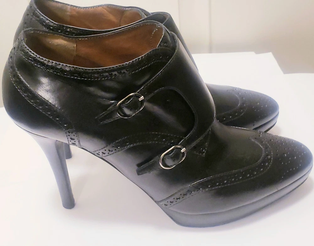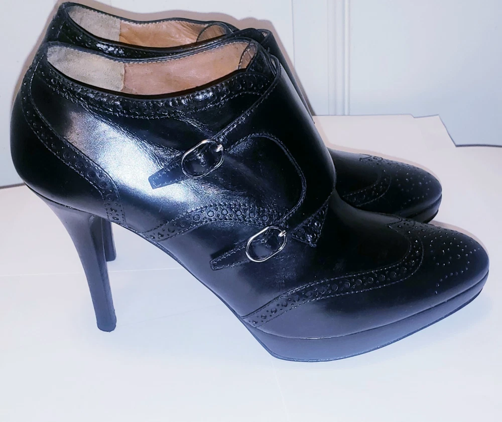 Ralph Lauren Purple Label Monk Strap Vilinda Bootie Heels Oxford Black MSRP
