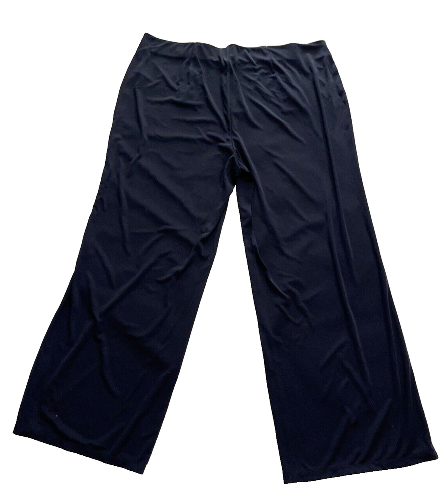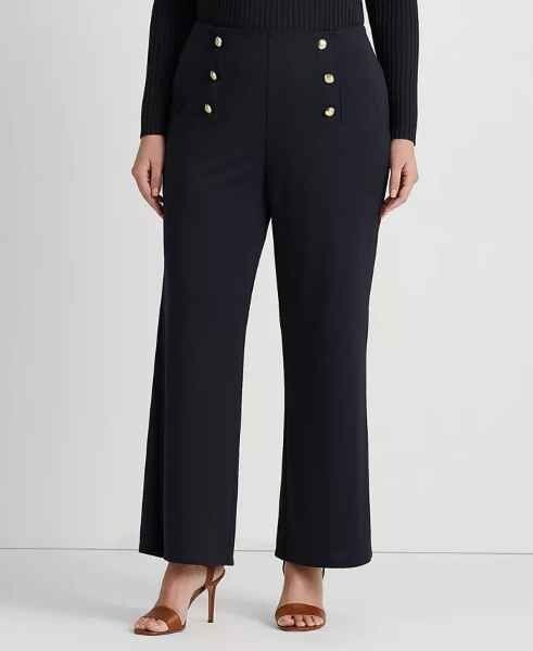 Ralph Lauren women's High-Rise Matte Jersey Pants size: 2X color: Navy High-rise Wide-leg silhouette Elasticized back waistband Pull-on styling Three-button faux-placket at each hip Gold-tone crest-embossed buttons Polyester, elastane retail $145 waist 20" (unstretched) rise 13" inseam 31" R008