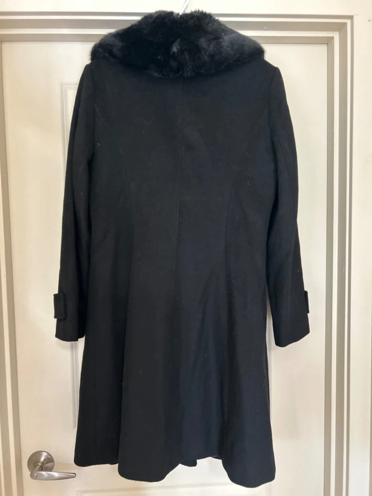 Elevate your style with this stunning full length coat from Lauren Ralph Lauren. Crafted from premium quality wool, this coat is perfect for any formal occasion. The black color and faux collar add a touch of sophistication, while the gold buttons and pockets cuff detail provide a touch of elegance. This designer coat is tailored to fit women's size 12 and is lined with a combination of nylon and polyester for added comfort. The coat's quality and style are perfect for any fashion-conscious woman looking to make a statement.