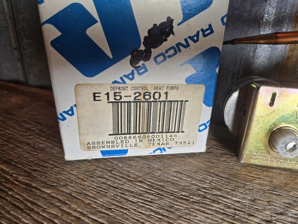The Ranco Heat Pump De-Ice Control E15-2601 is a new and boxed product designed for HVAC and refrigeration systems. This model operates on a corded electric power source and has a voltage of 240V. Specifically made by the brand Ranco, this de-ice control is an essential part for maintaining and regulating heating systems in cold temperatures.