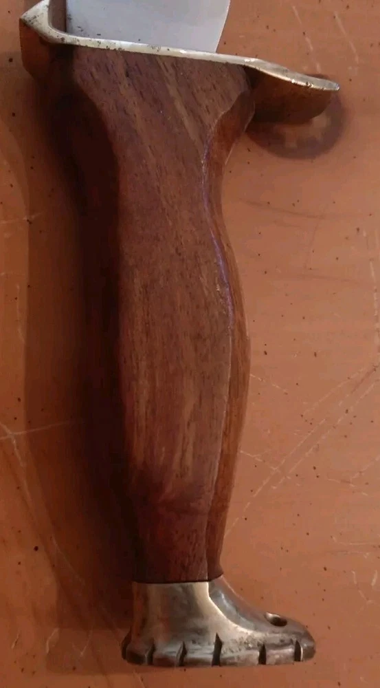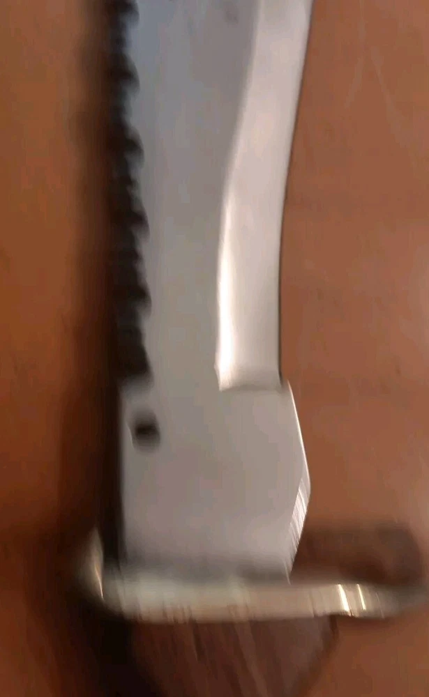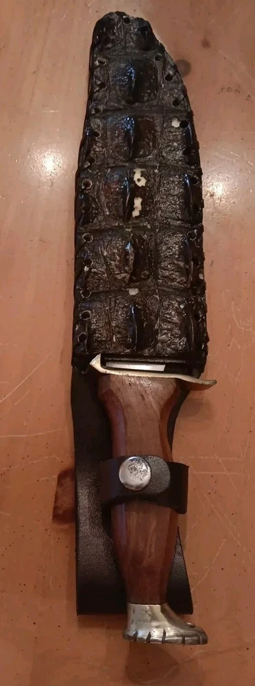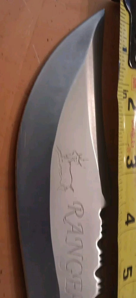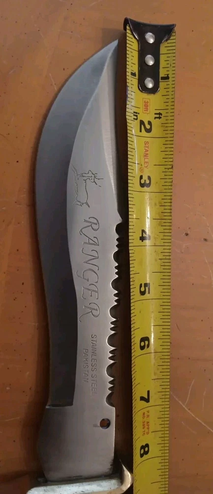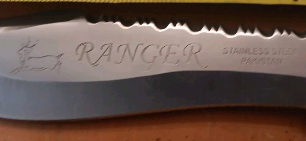 This Ranger stainless steel knife was crafted in Pakistan and features a unique alligator skin sheath. The blade is made of durable stainless steel with a double cutting edge, perfect for any hunting or outdoor adventure. The handle is made of wood, providing a comfortable grip for easy use. This original bowie knife is a must-have for any collector or outdoor enthusiast. Blade length is 8 inches with an overall length of 13 inches.