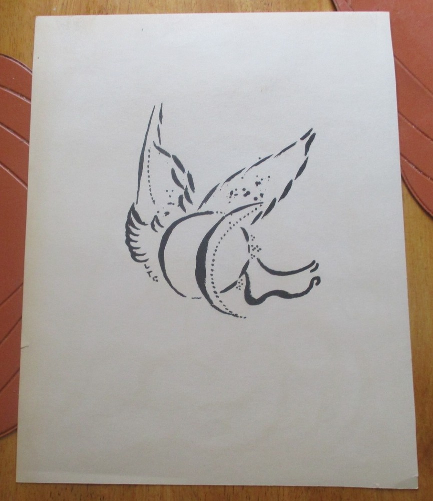 This is a Rare Lithograph Marc Chagall Cain and Abel From Drawings from the Bible 1960we are listing from a N.Y. estate. From Illustrations for the bible,Verve Teriade,1960. This art measures 12" x 10". There is a small fold in the lower corned and tiny split on the border.