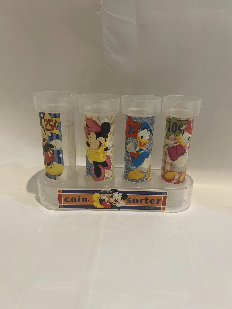 This rare and adorable Disney coin sorter bank features beloved characters such as Mickey Mouse, Minnie, Donald Duck, and Daisy. Made in China, this contemporary piece is a must-have for any Disneyana collector. The brand is Disney and the theme is Mickey Mouse, making it a perfect addition to any collection. The bank is unmodified and comes with all its original parts. It is a great find for those who love Disney and collecting. This item is perfect for display or as a gift. Get your hands on this amazing piece of Disney history today!