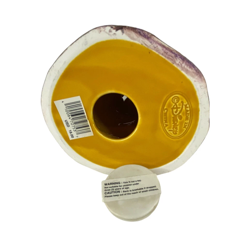 This rare Disney Lion King Mufasa and Simba ceramic coin bank is a must-have for any Disney collector. The bank features the iconic duo from the beloved movie and is in excellent shape for its age. The nose of the bank has some minor repairs, but this does not detract from the overall value of this piece.