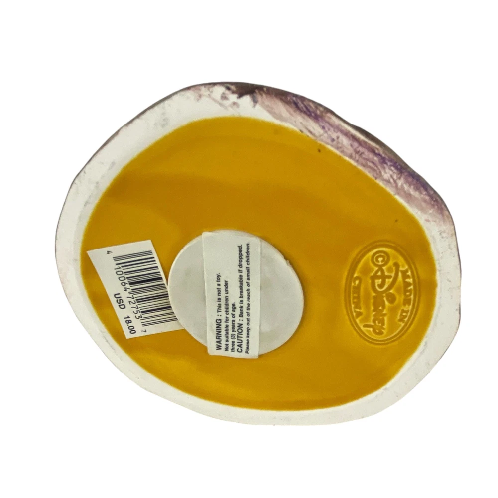 This rare Disney Lion King Mufasa and Simba ceramic coin bank is a must-have for any Disney collector. The bank features the iconic duo from the beloved movie and is in excellent shape for its age. The nose of the bank has some minor repairs, but this does not detract from the overall value of this piece.
