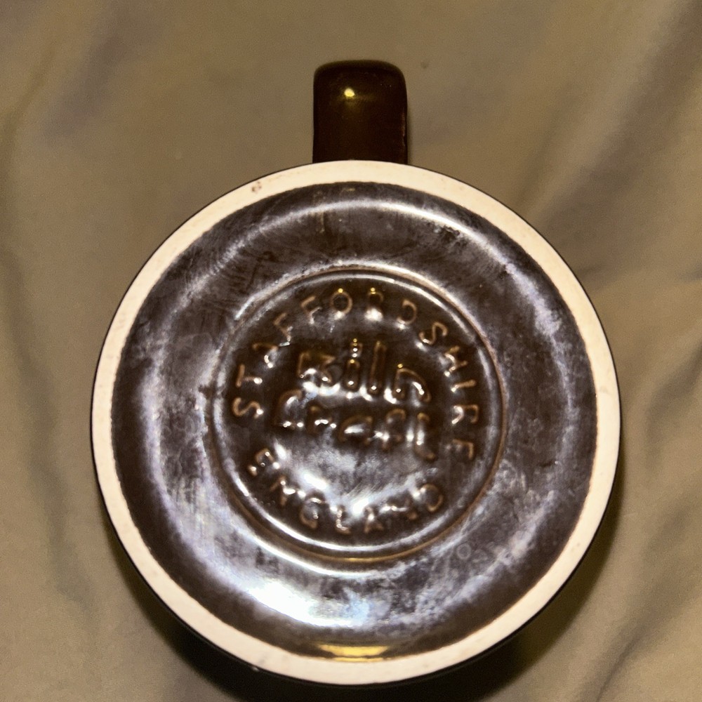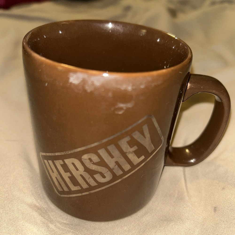 Embrace the nostalgia of the 1980s with this rare vintage Hershey's coffee mug, crafted in Staffordshire, England. Its classic round shape and brown gold color make it a striking addition to any collection or a delightful everyday use item. The mug features the iconic Hershey's logo, evoking the sweet memories of chocolate, and is designed to hold your favorite hot or cold beverages. This ceramic and porcelain mug is not just a charming piece but also a practical one, being dishwasher safe for easy cleaning and machine washable for care. It stands at 4 inches tall with a comfortable 8 oz capacity and a handle for a secure grip. Whether it's for your morning coffee or evening tea, this mug is suited for all occasions and unisex adults alike.
