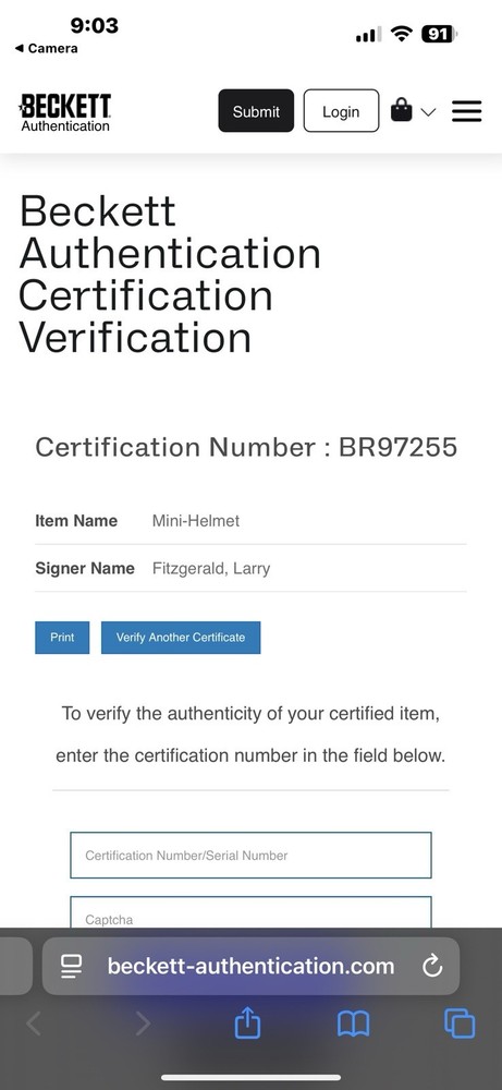 The product is a rare Larry Fitzgerald Arizona Cardinals signed mini helmet with a Beckett witnessed COA. This authentic item holds value for fans of football and memorabilia collectors. The helmet is a unique piece that showcases the talented player's signature, making it a prized possession for fans of the Arizona Cardinals and NFL football. Made in Mexico, this original product adds a special touch to any sports memorabilia collection.