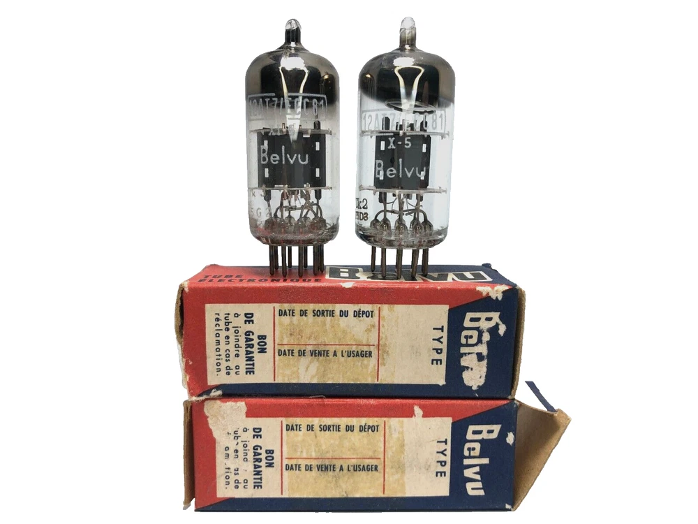 โจ Pair of Belvu 12AT7 ECC81 Vacuum Tubes โ Made in 1964 โ Perfect for Guitar Amplifiers and Audio Enthusiasts! ๐ธ๐ถ Description: โBring a touch of vintage brilliance to your sound setup with this rare pair (2 tube) of Belvu 12AT7/ECC81 vacuum tubes, manufactured in February 1964 in France. These tubes are a perfect choice for enhancing the tone and performance of guitar amplifiers or any high-fidelity audio system. ๐ตโจ Key Features: โข Condition: Brand-new old stock (NOS) ๐ โ never used, preserved in original packaging. โข Date of Manufacture: February 1964 โ a piece of audio history! ๐ฐ๏ธ โข Applications: Ideal for tube amplifiers, high-fidelity (Hi-Fi) audio systems, and vintage radios. Perfect for Guitarists: ๐ธ These 12AT7 tubes are widely used in guitar amplifiers for the preamp or driver stages, delivering: โข Warm, clear tones that are perfect for genres like jazz, blues, and rock. โข Excellent dynamics and smooth response compared to more aggressive alternatives like the 12AX7. Why Belvu? The Belvu brand, manufactured by Mazda-Belvu in France, is renowned for its precision and high-quality vacuum tubes. These tubes are sought after by collectors and audio enthusiasts for their reliability and exceptional sound clarity. Shipping: ๐ฆ Secure, shock-proof packaging to ensure the tubes arrive safely. ๐ International shipping available - Fast shipping with express mail โ Note: All sales are final. No returns accepted. ๐ Order now before theyโre gone! ๐โจ ๐ฃ Donโt miss this opportunity to own a rare pair of vintage tubes โ perfect for guitarists and audiophiles alike! Buy now and add timeless quality to your setup. ๐