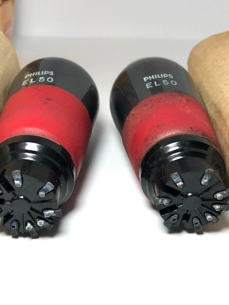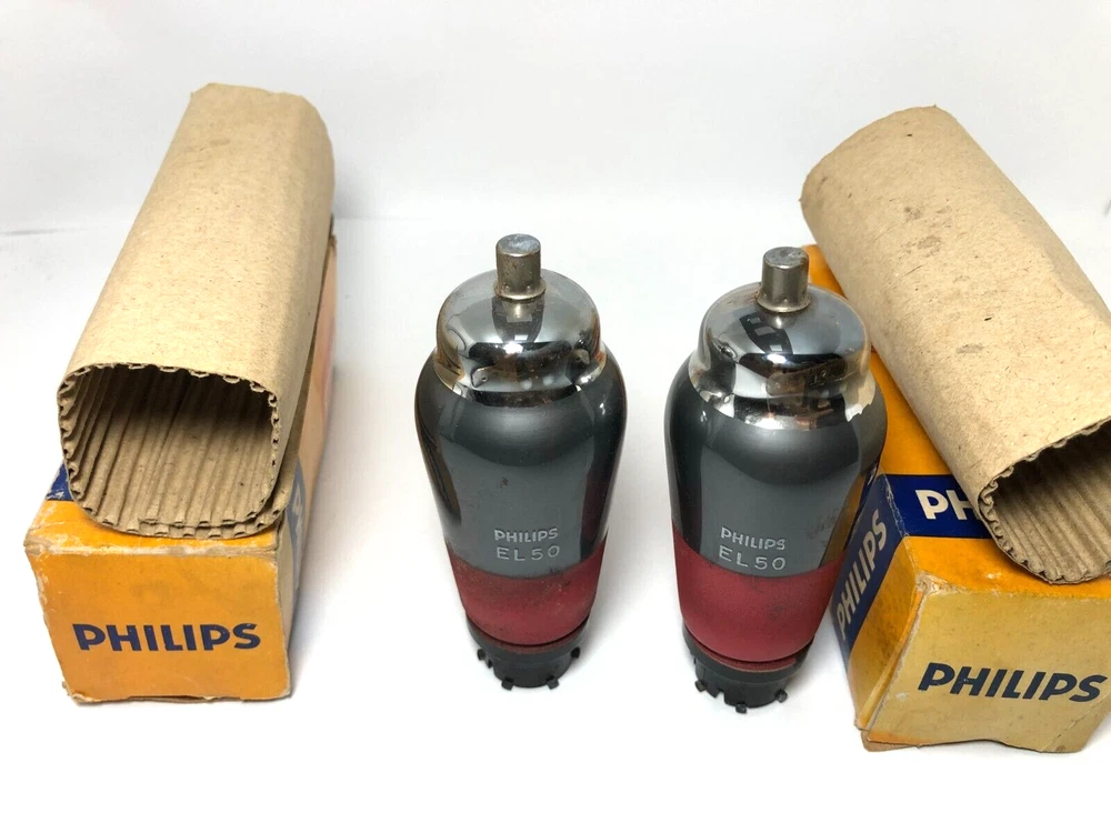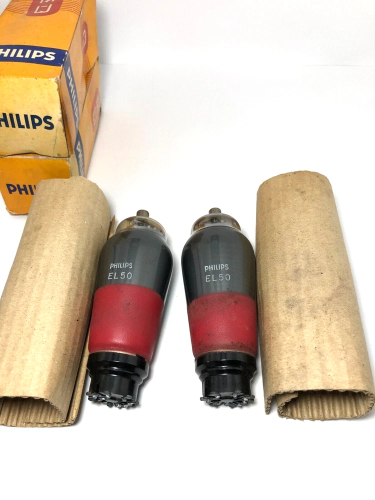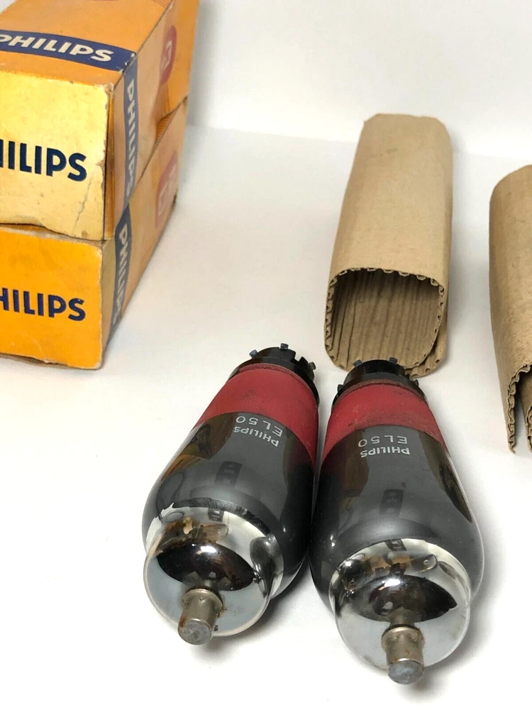 Rare Pair of Philips EL50 Tubes – New Old Stock (NOS) with Original Boxes! ( 2 PCS) Description: For sale is a rare pair of Philips EL50 vacuum tubes, brand new and never used! These tubes come in their original boxes with matching codes, making them a perfect find for collectors and vintage audio enthusiasts. Known for their exceptional quality and performance, these tubes are a must-have for high-fidelity audio setups and vintage amplifiers. ✨ Specifications: ✔️ Brand: Philips ✔️ Model: EL50 ✔️ Condition: New Old Stock (NOS) – Never Used ✔️ Country of Origin: European-made ✔️ Original Boxes: Included, matching codes Why Buy These Tubes? ✅ Authentic NOS – Rare , unused condition ✅ Matching Codes – Ensures originality and consistency ✅ High-Quality Philips Engineering – Superior sound and durability ✅ Carefully Packed – Will be shipped with extra protection Notes: ⚠️ The original boxes show wear and aging due to their age (from the 1970s). ⚠️ These tubes are becoming increasingly hard to find, especially in new condition! 📦 Don’t miss out on this rare opportunity – Buy now! Envoyé