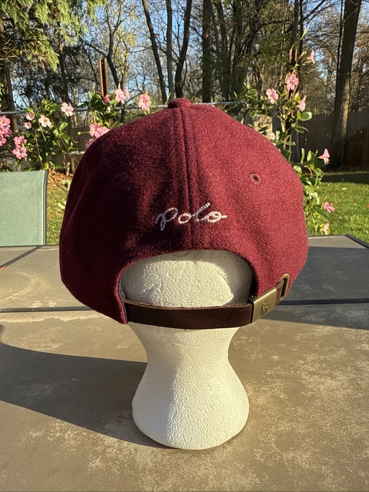 Get your hands on this rare authentic Polo Ralph Lauren baseball cap in a striking red/burgundy color. This classic 90s sports-themed cap features the iconic PRL logo and an adjustable leather strap for a comfortable fit. Made of a wool blend, this fleece cap is perfect for any casual occasion. The solid pattern and one-size-fits-all design make it a versatile addition to any hat collection. Condition: 9/10. Practically brand new. Just tried on. DM or message me with any offers. Will show additional pics upon request. Please see pictures for condition. Any noticeable flaws or damages will be pictured. Recommend laundering/ dry-cleaning before wear. Checkout my other items: - Depop: Movintij - IG: Movintij Thanks and good luck bidding!