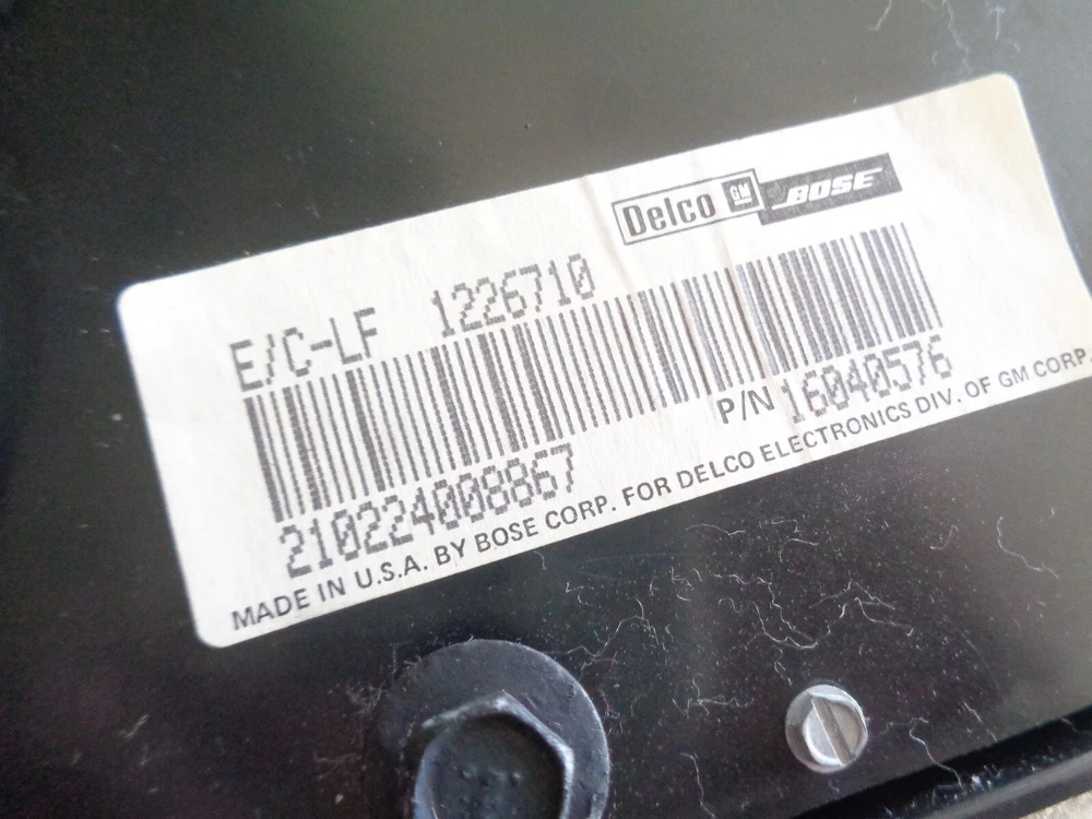 The last few photos are of the donor vehicle and the radio from the car-the car and radio are shown for reference and are not included-this listing is for the speakers only but the radio IS for sale at the time of this listing. This is a rare set of Delco Bose stereo speakers from a 1985 Eldorado that had only 54,000 miles on the odometer they were completely disassembled, inspected (any repairs necessary were performed) and then reassembled and bench-tested-ALL of them work perfectly and would make a perfect replacement for your optional (and very rare) Delco Bose Gold speakers. I am NOT SURE which models used these particular types so MAKE SURE they will work with your model (if you have a Riviera or Toronado)-I do know that these are technically correct for the 83-85 Seville and Eldorado models although you may need to modify your plug on the earlier versions as they were superseded at some point for the 84 and 85 model Eldorado and Sevilles (see very last photo for a page out of the GM Parts Book). The last few photos are of the donor vehicle and the radio from the car-the car and radio are shown for reference and are not included-this listing is for the speakers only but the radio IS for sale at the time of this listing.